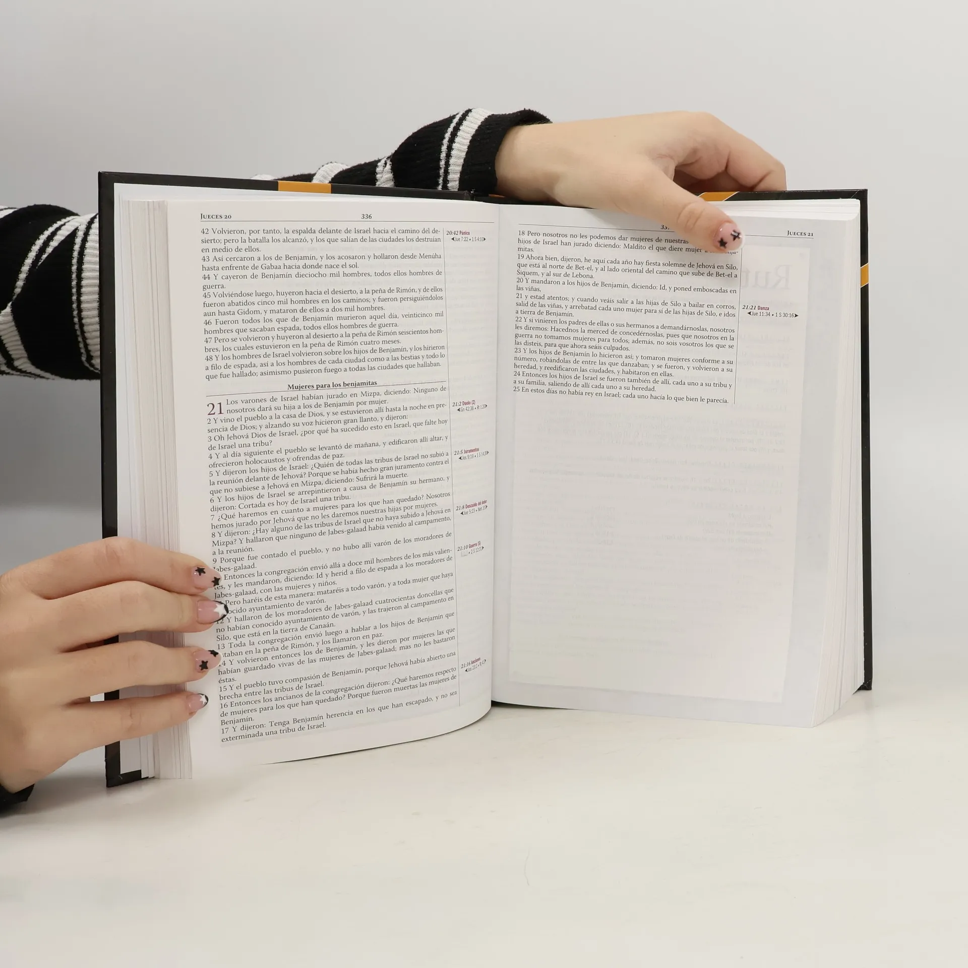 La Biblia Thompson de estudio contiene 1600 temas que abordan temas de la vida cotidiana en un formato simple. Muchas de las ayudas fueron trasladadas a la Escritura. Los mapas, gráficas y estudios de los personajes se hacen mas relevantes al pasaje que se esta leyendo.
