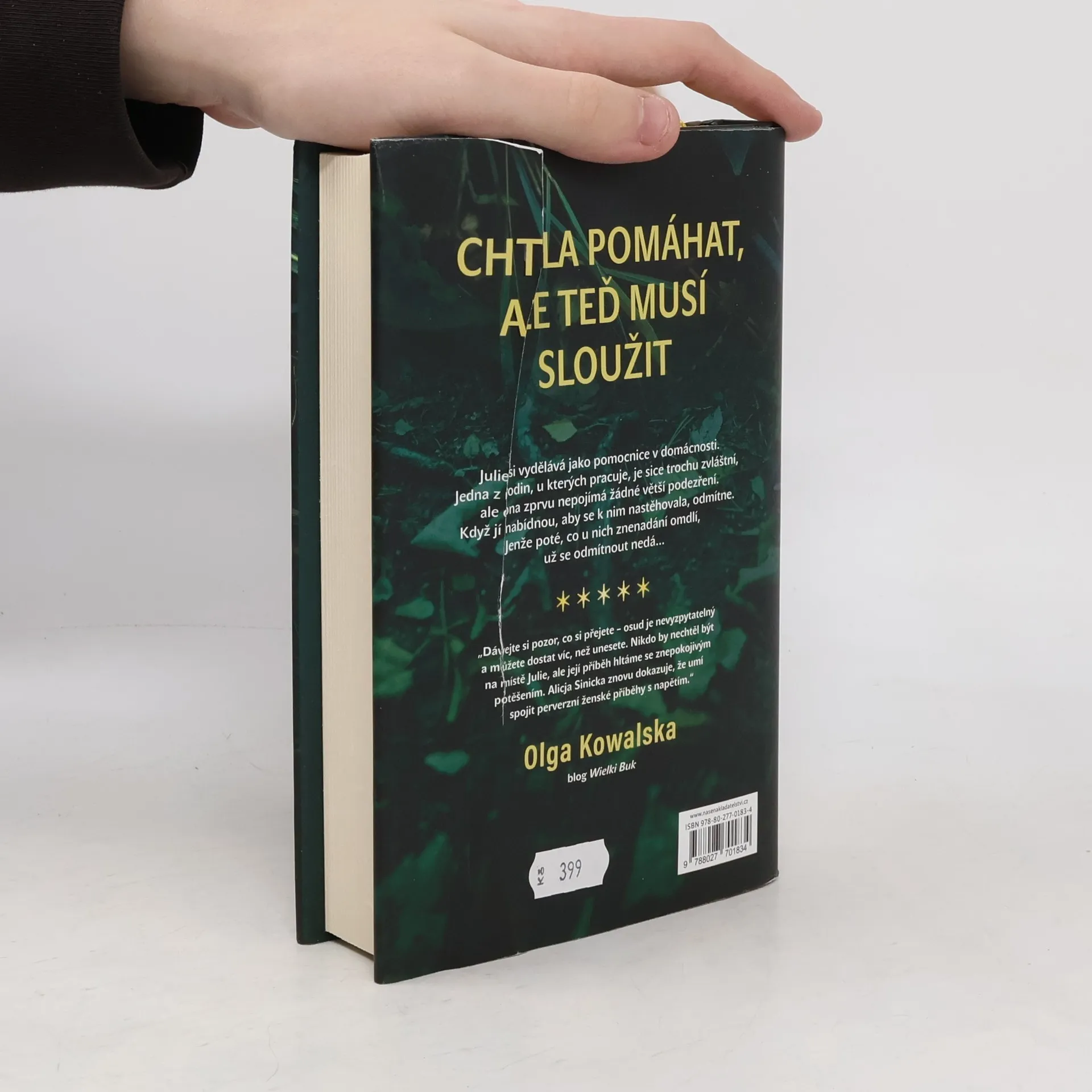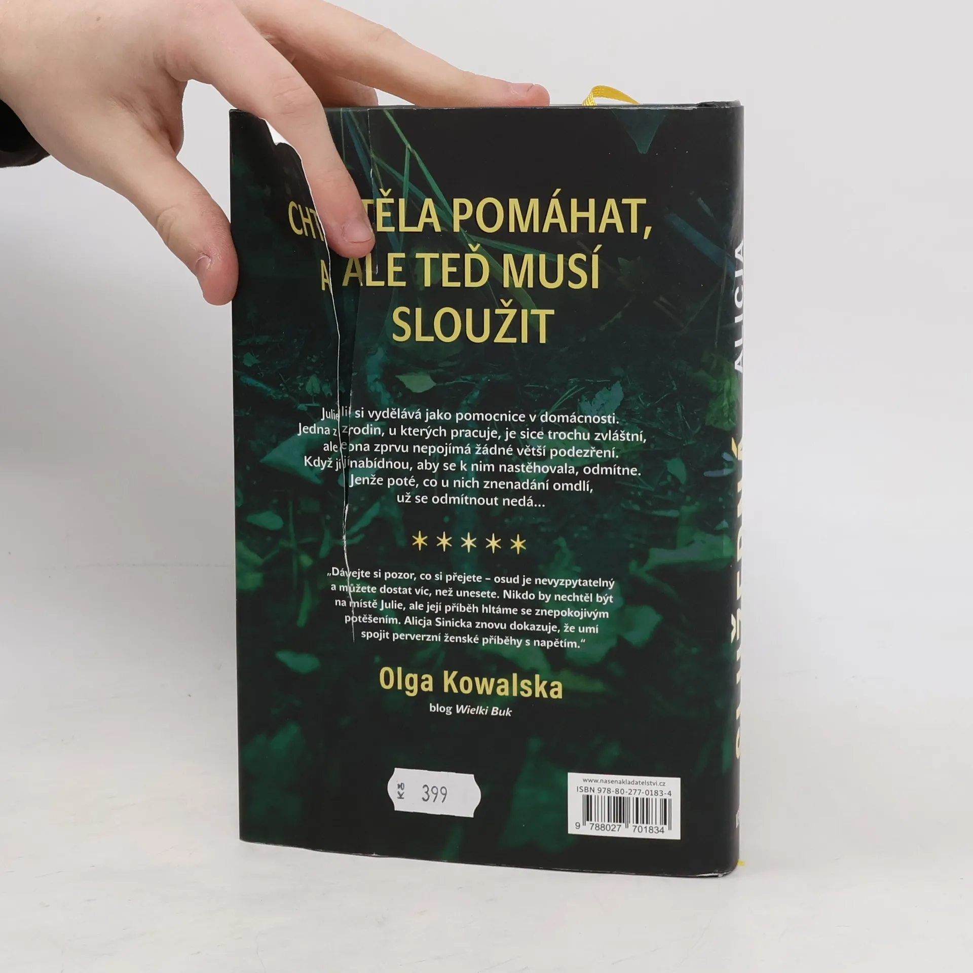 Julia, hlavní hrdinka románu polské spisovatelky Alice Sinické, je mladá žena se spoustou snů a cílů, která si přivydělává úklidem domácností. Pořádek je její osobní vášní. Jednoho dne nastoupí k výkonu své profese do vily manželů Borewských. Rodinu tvoří poněkud zvláštní, tajemná žena Maria, její muž Mikuláš, vlivný advokát, posedlý středověkem, a také dospělý syn Kacper, spisovatel, který pracuje na svém novém románu. Krátce po nástupu dávají Borewští Julii návrh na užší spolupráci a společné bydlení. Ta jej zprvu zavrhuje. Poté, co při výkonu své práce ve vile znenadání omdlí, se však všechno změní. Z návrhu je nabídka, která se neodmítá. Julia se stává součástí strašlivé hry, kdy se boj o vlastní důstojnost a svobodu změní v boj o holý život. Mrazivý thriller Alice Sinické, plný nečekaných zvratů a napětí, přenese čtenáře do světa týrané ženy, zoufale bojující o zvrácení svého zlého osudu. Děj tohoto dramatického příběhu o manipulátorech a jejich oběti autorka zasadila do reálných kulis svého rodného Dolního Slezska, což pocit autenticity ještě umocňuje.