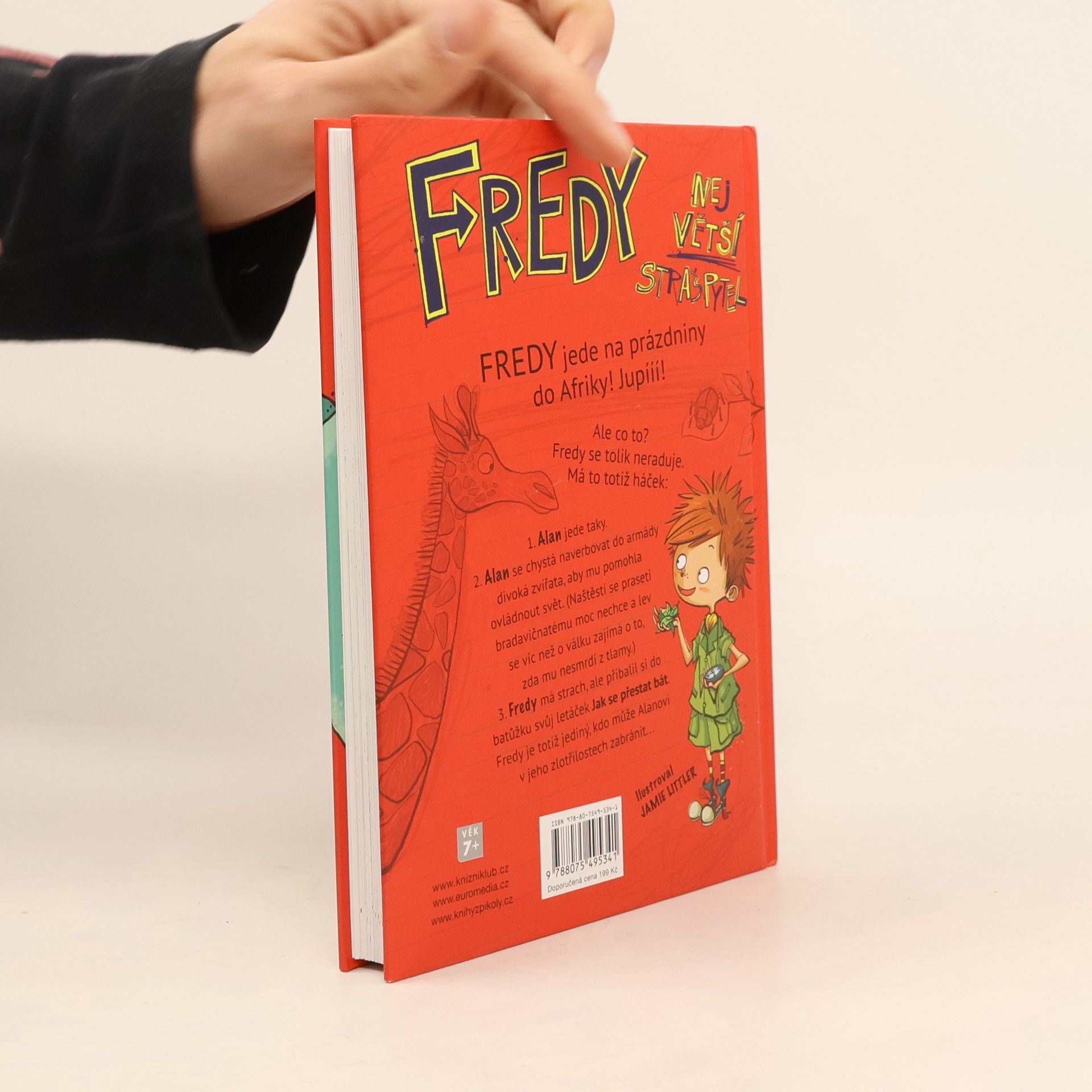 Fredy jede na prázdniny do Afriky! Jupííí! Jak to, že se Fredy až tolik neraduje? Má to totiž háček. Zaprvé: Jeho největší nepřítel Alan jede taky. Zadruhé: Alan se chystá naverbovat do své armády divoká zvířata, aby mu pomohla ovládnout svět. (Nemějte ale přílišné obavy, praseti bradavičnatému se moc nechce a lev se víc než o válku zajímá o to, zda mu nepáchne z tlamy.) A zatřetí: Fredy má strach ze zvířat, prázdnin i Alana! Naštěstí si do batůžku přibalil svůj leták „Jak se přestat bát“. Fredy je totiž jediný, kdo může Alanovi v jeho zlotřilostech zabránit... Volné pokračování pekelně vtipné série o dobrodružstvích jednoho nezbedného strašpytla jménem Fredy. Kniha byla nominována na nejvtipnější knihu roku!