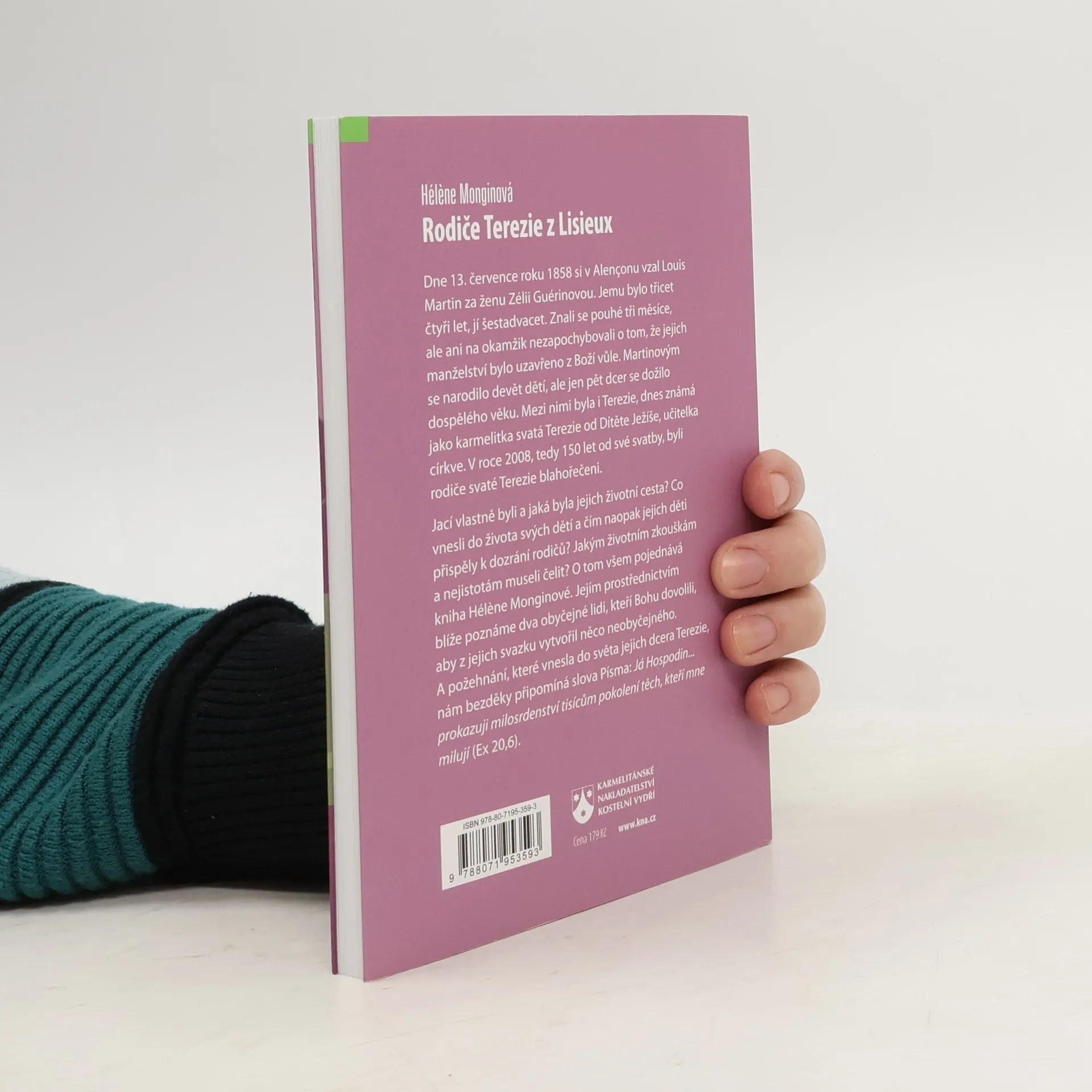 Dne 13. července roku 1858 si v Alençonu vzal Louis Martin za ženu Zélii Guérinovou. Jemu bylo třicet čtyři let, jí šestadvacet. Znali se pouhé tři měsíce, ale ani na okamžik nezapochybovali o tom, že jejich manželství bylo uzavřeno z Boží vůle. Martinovým se narodilo devět dětí, ale jen pět dcer se dožilo dospělého věku. Mezi nimi byla i Terezie, dnes známá jako karmelitka svatá Terezie od Dítěte Ježíše, učitelka církve. V roce 2008, tedy 150 let od jejich svatby, byli rodiče svaté Terezie blahořečeni. Jací vlastně byli a jaká byla jejich životní cesta? Co vnesli do života svých dětí a čím naopak jejich děti přispěly k dozrání rodičů? Jakým životním zkouškám a nejistotám museli čelit? O tom všem pojednává kniha Helene Monginové. Jejím prostřednictvím poznáme blíže dva obyčejné lidi, kteří Bohu dovolili, aby z jejich svazku vytvořil něco neobyčejného. A požehnání, které vnesla do světa jejich dcera Terezie, nám bezděky připomíná slova Písma: Já Hospodin… prokazuji milosrdenství tisícům pokolení těch, kteří mne milují (Ex 20,6).