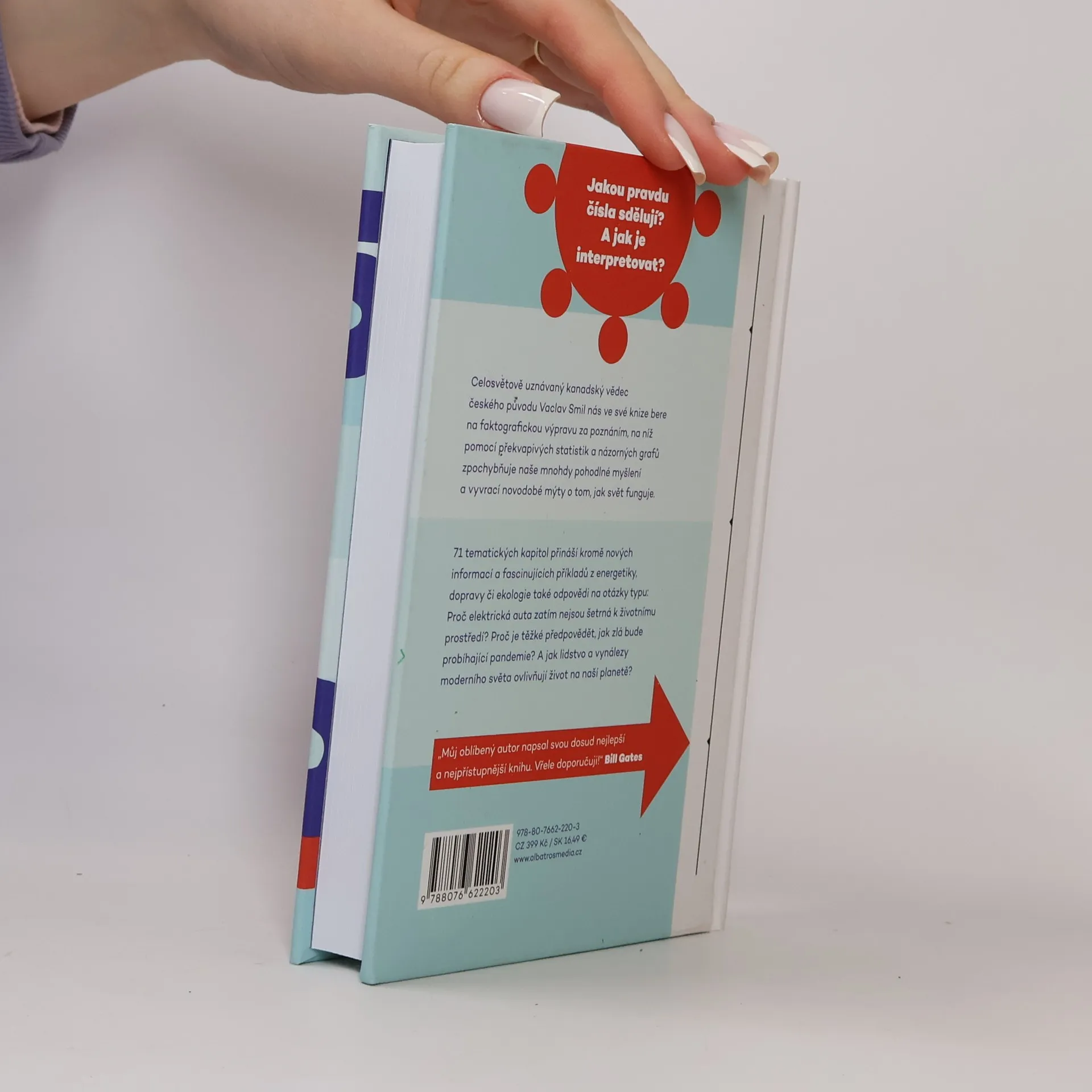 71 věcí, které byste měli vědět o světě Čísla nelžou. Ale jakou pravdu sdělují? Jakou pravdu čísla sdělují? A jak je interpretovat? Celosvětově uznávaný kanadský vědec českého původu Vaclav Smil nás ve své knize bere na faktografickou výpravu za poznáním, na níž pomocí překvapivých statistik a názorných grafů zpochybňuje naše mnohdy pohodlné myšlení a vyvrací novodobé mýty o tom, jak svět funguje. 71 tematických kapitol přináší kromě nových informací a fascinujících příkladů z energetiky, dopravy či ekologie také odpovědi na otázky typu: Proč elektrická auta zatím nejsou šetrná k životnímu prostředí? Proč je těžké předpovědět, jak zlá bude probíhající pandemie? A jak lidstvo a vynálezy moderního světa ovlivňují život na naší planetě?