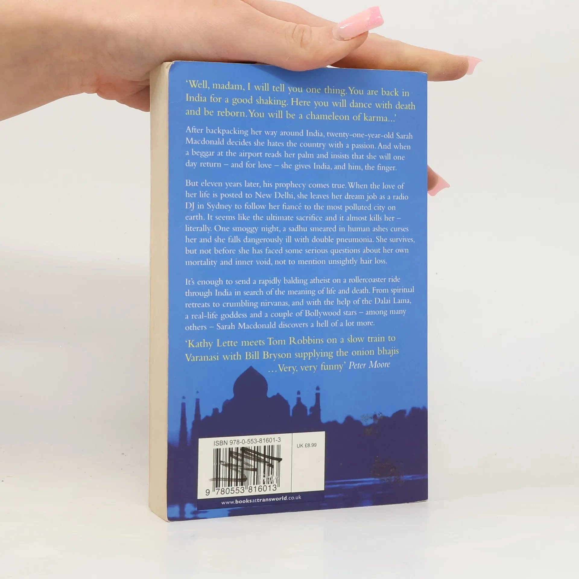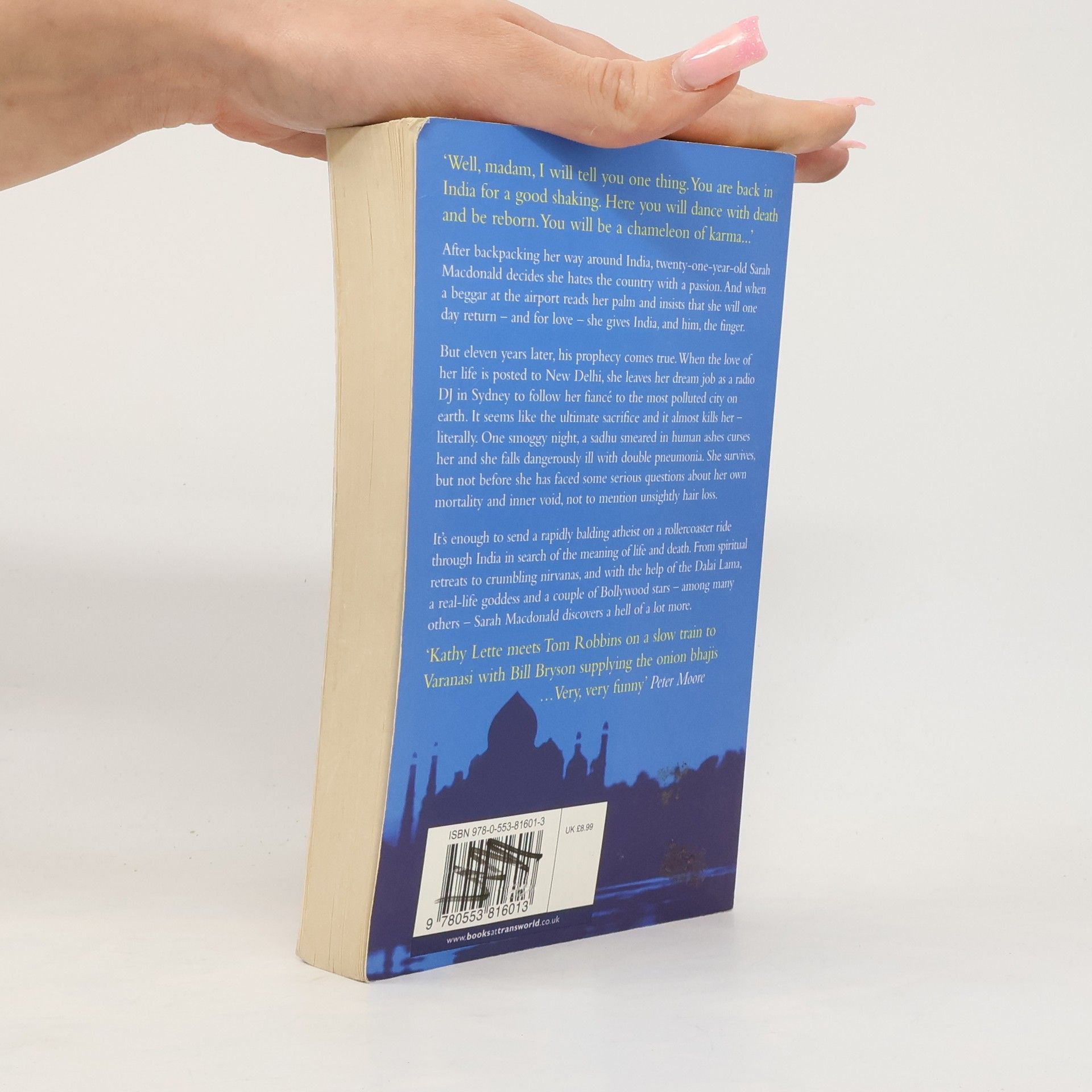 After backpacking her way around India, twenty-one-year-old Sarah Macdonald decides she hates the country with a passion. And when a beggar at the airport reads her palm and insists that she will one day return - and for love - she gives India, and him, the finger. But eleven years later, his prophecy comes ture. When the love of her life is posted to New Delhi, she leaves her dream job as a radio DJ in Sydney to follow her fiance to the most polluted ciry on earth. It seems like the ultimate sacrifice and it almost kills her - literally. One smoggy night, a sadhu smeared in human ashes curses her and she fall dangerously ill with double pneumonia. She survives, but not before she has faced some serious questions about her own morality and inner void, not to mention unsightly hair loss.--