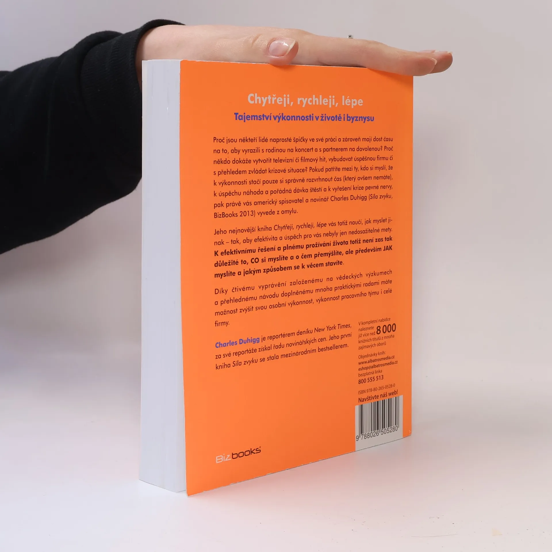 Proč jsou někteří lidé naprosté špičky ve své práci a zároveň mají dost času na to, aby vyrazili s rodinou na koncert a s manželkou na dovolenou? Proč někdo dokáže vytvořit televizní či filmový hit, vybudovat úspěšnou firmu či s přehledem zvládat krizové situace? Pokud patříte mezi ty, kdo si myslí, že k výkonnosti stačí pouze si správně rozvrhnou čas (který ovšem nemáte), k úspěchu náhoda a pořádná dávka štěstí a k vyřešení krize pevné nervy, pak právě vás americký spisovatel a novinář Charles Duhigg (Síla zvyku, BizBooks 2013) vyvede z omylu. Jeho nejnovější kniha Chytřeji, rychleji, lépe vás totiž naučí, jak myslet jinak – tak, aby efektivita a úspěch pro vás nebyly jen nedosažitelné mety. K efektivnímu řešení a plnému prožívání života totiž není zas tak důležité to, CO si myslíte a o čem přemýšlíte, ale především JAK myslíte a jakým způsobem se k věcem stavíte. Díky čtivému vyprávění založenému na vědeckých výzkumech a přehlednému návodu doplněnému mnoha praktickými radami máte možnost zvýšit svou osobní výkonnost, výkonnost pracovního týmu i celé firmy.