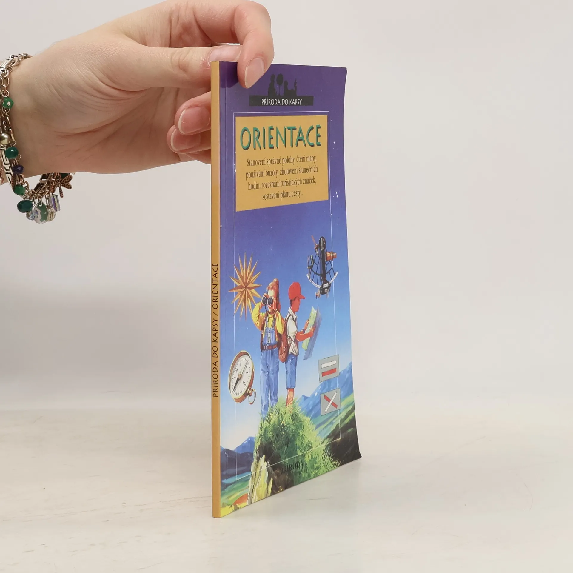 Práce s buzolou, mapami, seznámení se sextantem a kompasem, využití slunce, větru, hvězd, rostlin a turistických značek k orientaci v přírodě. Obálkový podnázev: stanovení správné polohy, čtení mapy, používání buzoly, zhotovení slunečních hodin, rozeznávání turistických značek, sestavení plánu cesty...