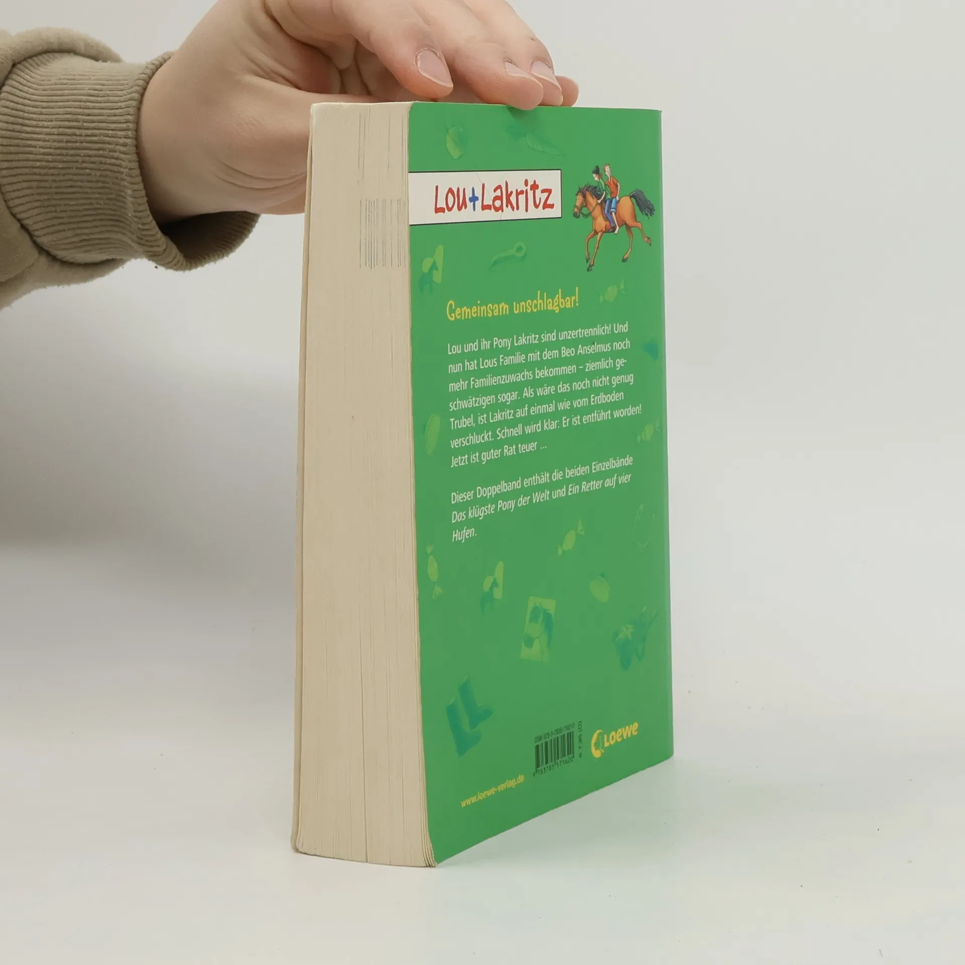 Lou und ihr Pony Lakritz sind unzertrennlich! Und nun hat Lous Familie mit dem Beo Anselmus noch mehr Familienzuwachs bekommen – ziemlich geschwätzigen sogar. Als wäre das noch nicht genug Trubel, ist Lakritz auf einmal wie vom Erdboden verschluckt. Schnell wird klar: Er ist entführt worden! Jetzt ist guter Rat teuer ... Der Doppelband enthält die Einzelbände „Das klügste Pony der Welt“ und „Ein Retter auf vier Hufen“.