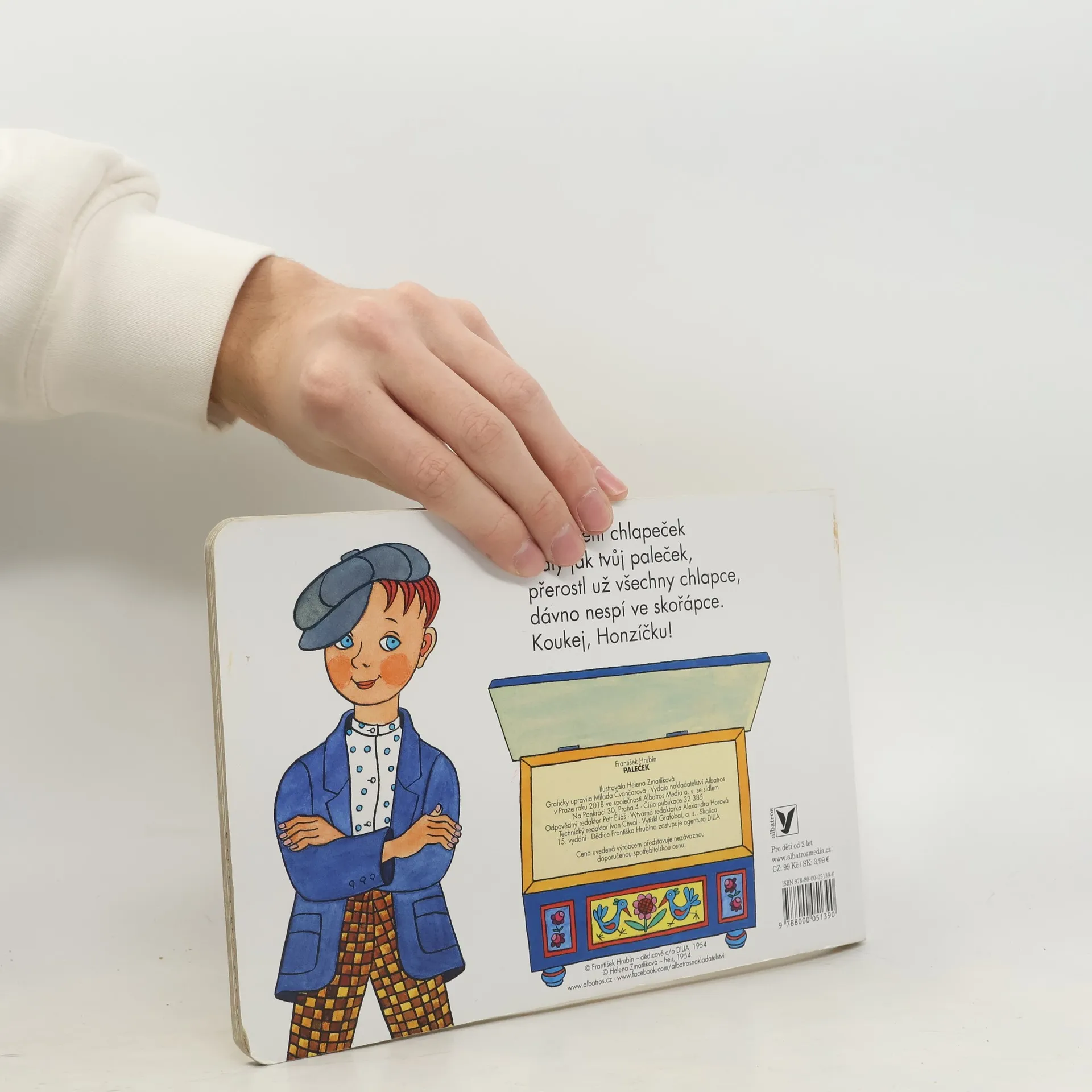Pohádka přebásněná Františkem Hrubínem, klasikem české poezie, je doprovázena půvabnými obrázky Heleny Zmatlíkové. Hezké vyprávění je o chlapečkovi, který byl tak malinký, že se koupal v náprstku, spal v ořechové skořápce a snídal tři máčky. Zkrátka byl to Paleček!