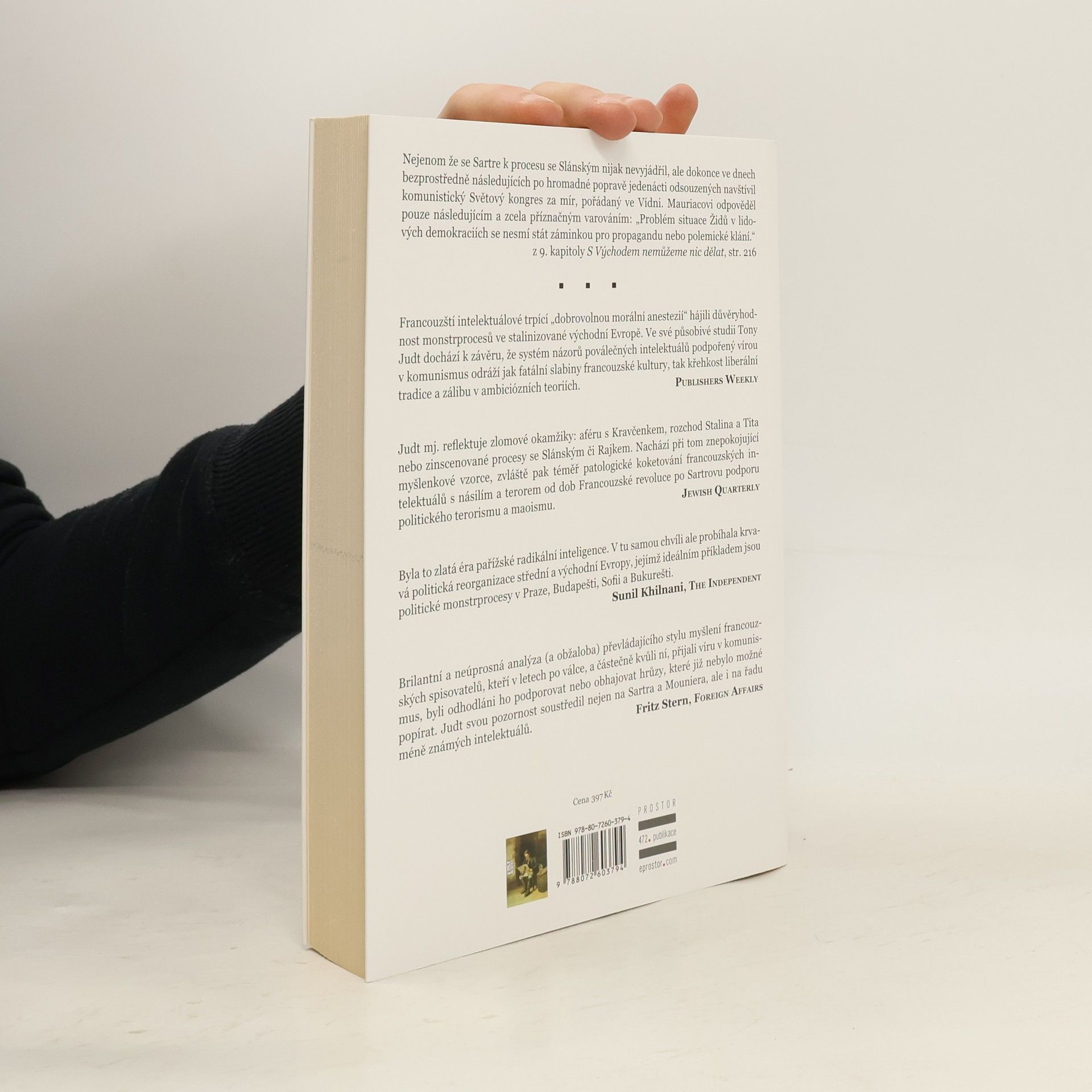 Britský historik, který se specializoval na moderní evropské dějiny, nabízí podnětný a silně kritický pohled na celou jednu generaci francouzských intelektuálů, publicistů a spisovatelů, jež byla po dobu zhruba dvanácti let, počínaje osvobozením země v roce 1944 až po maďarské události roku 1956, stržena vírem komunismu. Veřejnou debatu v zásadě formovalo to, jaké stanovisko k počínání zahraničních i domácích komunistů dotyčný zaujal. Autor se věnuje předválečnému kontextu, podává podrobný výklad východoevropských monstrprocesů, včetně těch v Československu, sleduje, jak na ně reagovali ve Francii, a zkoumá, nakolik byla tato zkušenost specificky francouzská. Judtova analýza se netýká jen nejznámějších osobností, jako byl Jean-Paul Sartre, Albert Camus či Simone de Beauvoirová, ale zahrnuje širokou intelektuální komunitu katolických filozofů, vlivných novinářů, literárních kritiků a básníků včetně komunistických. Převládající styl jejich myšlení, koketování s násilím a morální nezodpovědnost udávaly tón nejen ve Francii, ale v celém poválečném evropském kulturním a politickém životě.