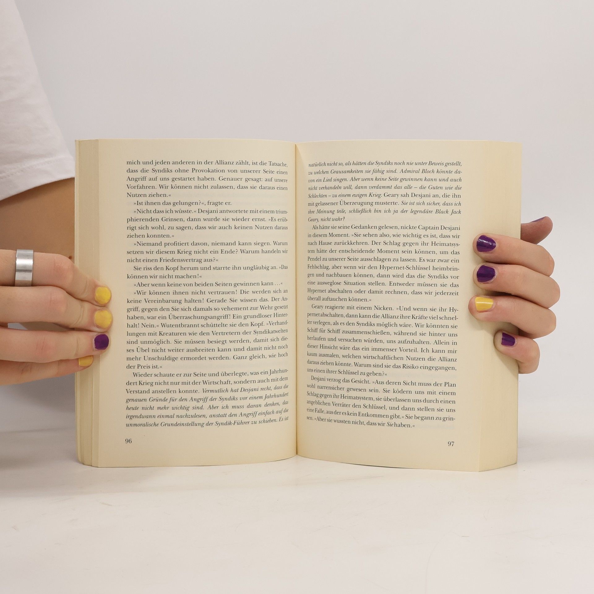 Seit hundert Jahren kämpft die Allianz gegen die Syndics - und verliert auf ganzer Linie. Die zusammengeschossene Flotte ist im Feindesgebiet gestrandet. Ihre einzige Hoffnung ist ein Mann, der seit fast einem Jahrhundert für tot gilt.§§Jedes Schulkind kennt Captain John 'Black Jack' Gearys legendäre Taten. Nach seinem heldenhaften 'letzten Gefecht' zu Anfang des Krieges ist er vermisst und gilt als gefallen, doch hat Geary wie durch ein Wunder im Überlebenskälteschlaf überlebt und übernimmt widerstrebend den Befehl über die Flotte der Allianz, die sich der Vernichtung durch die Syndics gegenübersieht. Die einzige Chance, den Krieg noch zu gewinnen, besteht darin, den erbeuteten Hypernet-Schlüssel der Syndics zur Heimatwelt zu schaffen. Dazu aber muss Geary allen Erwartungen entsprechen, die aufgrund der heldenhaften Legenden um 'Black Jack' in ihn gesetzt werden ...