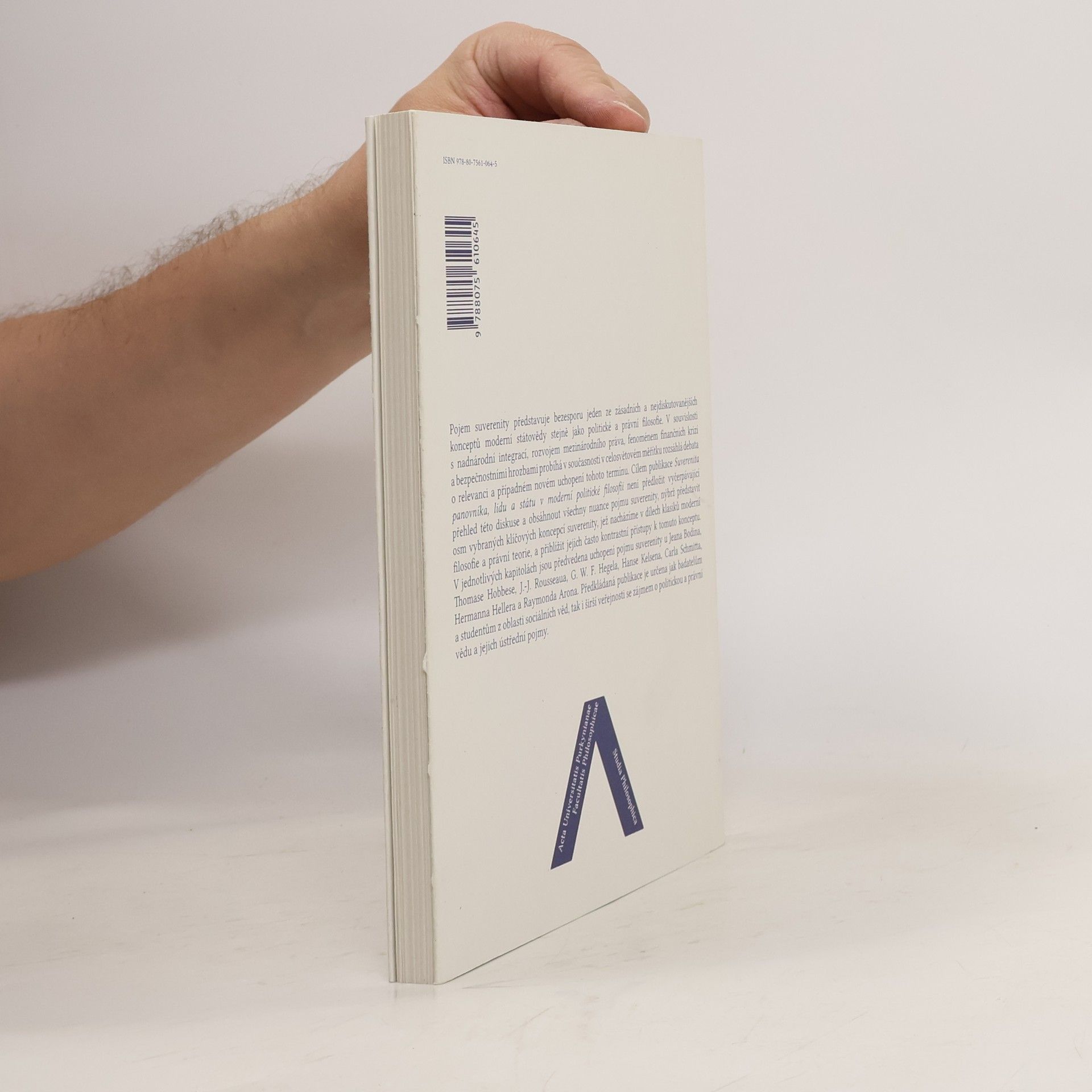 Pojem suverenity představuje bezesporu jeden ze zásadních a nejdiskutovanějších konceptů moderní státovědy stejně jako politické a právní filosofie. V souvislosti s nadnárodní integrací, rozvojem mezinárodního práva, fenoménem finančních krizí a bezpečnostními hrozbami probíhá v současnosti v celosvětovém měřítku rozsáhlá debata o relevanci a případném novém uchopení tohoto termínu. Cílem publikace „Suverenita panovníka, lidu a státu v moderní politické filosofii“ není předložit vyčerpávající přehled této diskuse a obsáhnout všechny nuance pojmu suverenity, nýbrž představit osm vybraných klíčových koncepcí suverenity, jež nacházíme v dílech klasiků moderní filosofie a právní teorie, a přiblížit jejich často kontrastní přístupy k tomuto konceptu. V jednotlivých kapitolách jsou předvedena uchopení pojmu suverenity u Jeana Bodina, Thomase Hobbese, J.-J. Rousseaua, G. W. F. Hegela, Hanse Kelsena, Carla Schmitta, Hermanna Hellera a Raymonda Arona. Předkládaná publikace je určena jak badatelům a studentům z oblasti sociálních věd, tak i širší veřejnosti se zájmem o politickou a právní vědu a jejich ústřední pojmy.