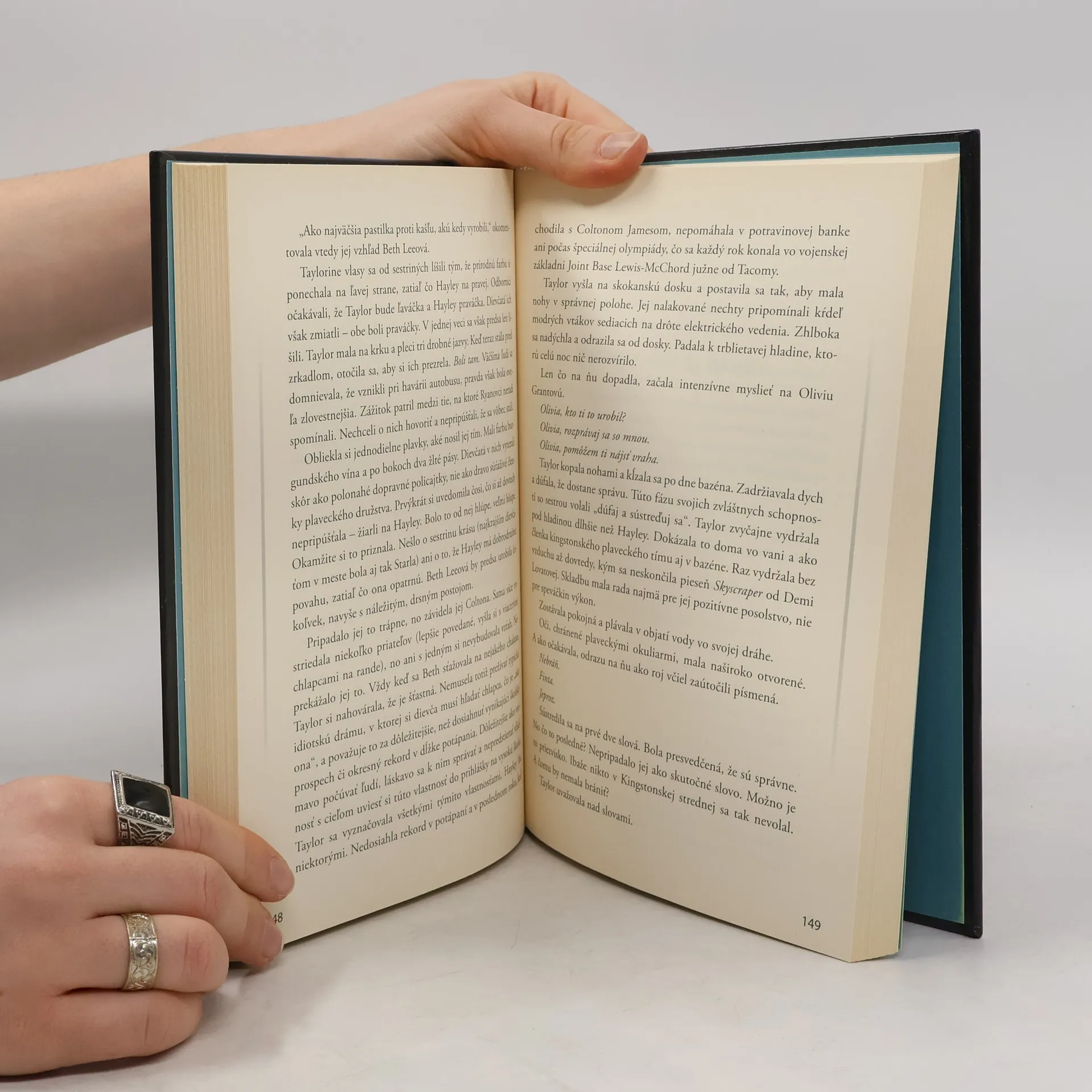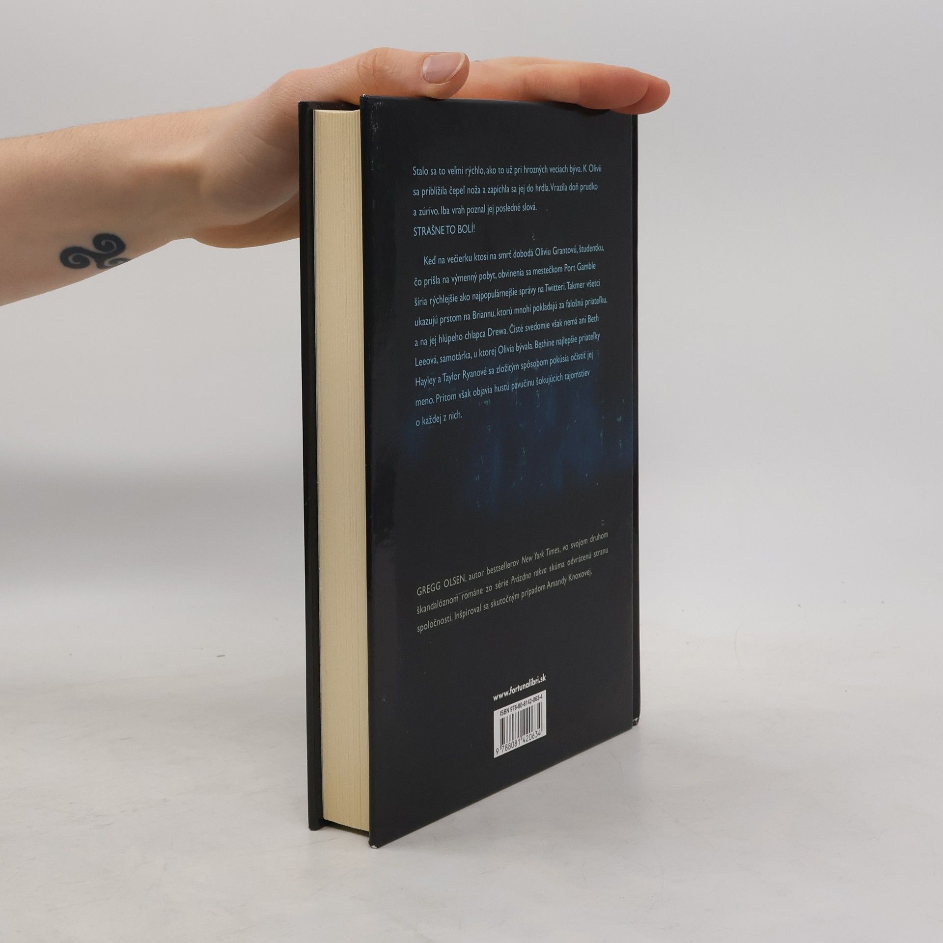 Stalo sa to veľmi rýchlo, ako to už pri hrozných veciach býva. Nikdy neberte vraždu naľahko... K Olívii sa priblížila čepeľ noža a zapichla sa jej do hrdla. Vrazila doň prudko a zúrivo. Iba vrah poznal jej posledné slová. Strašne to bolí! Keď na večierku ktosi na smrť dobodá Olíviu Grantovú, študentku, čo prišla na výmenný pobyt, obvinenia sa mestečkom Port Gamble šíria rýchlejšie ako najpopulárnejšie správy na Twitteri. Takmer všetci ukazujú prstom na Briannu, ktorú mnohí pokladajú za falošnú priateľku, a na jej hlúpeho chlapca Drewa. Čisté svedomie však nemá ani Beth Leeová, samotárka, u ktorej Olívia bývala. Bethine najlepšie priateľky Hayley a Taylor Ryanové sa zložitým spôsobom pokúsia očistiť jej meno. Pritom však objavia hustú pavučinu šokujúcich tajomstiev o každej z nich.