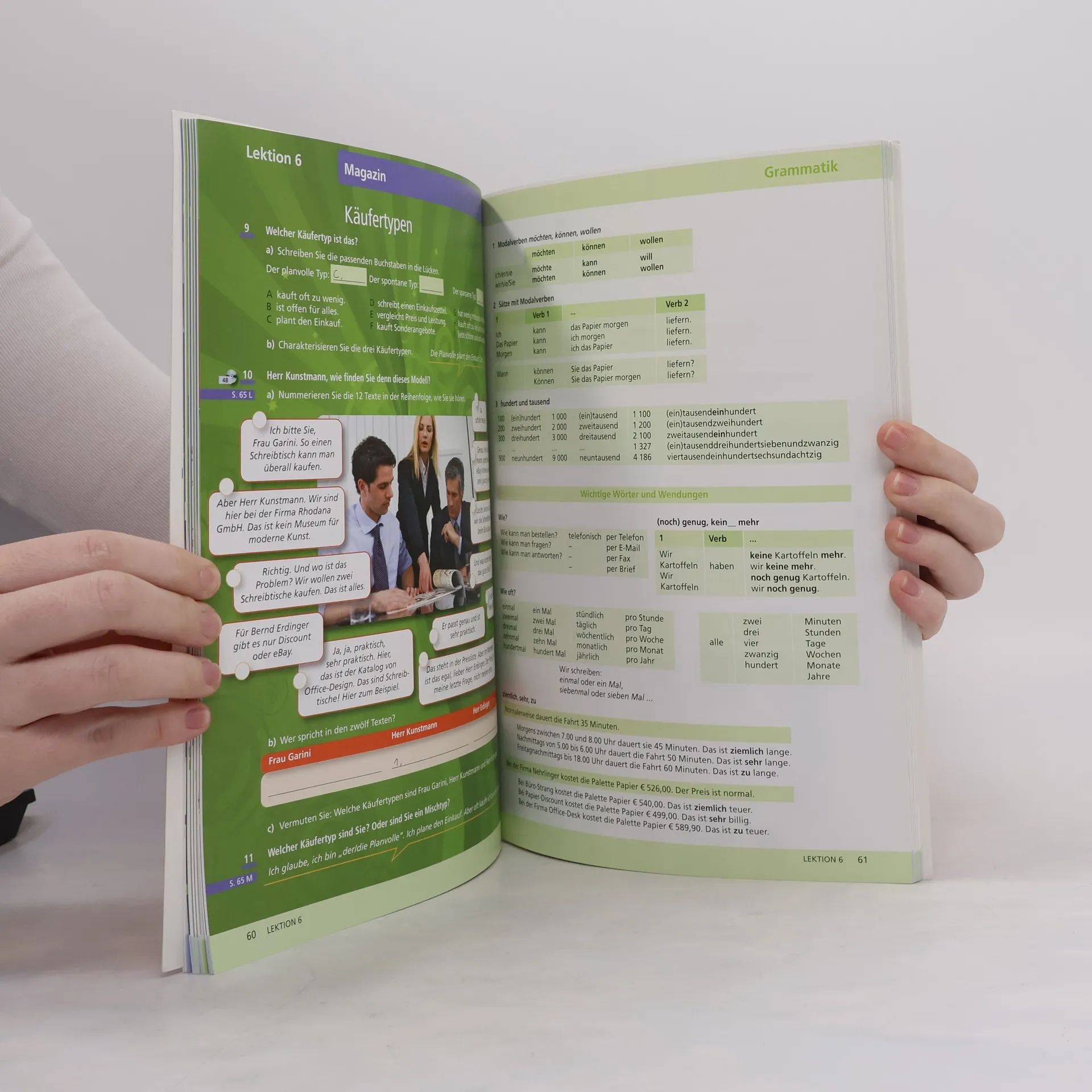 Niveau A1.1 Das Lehrwerk verbindet Berufssprache mit Alltagssprache und richtet sich an Erwachsene und Jugendliche ab 16 Jahren in Grundstufenkursen (A1 bis B1) weltweit. Es ist ideal für alle, die Deutsch aus beruflichen Gründen lernen, wie ausländische Mitarbeiter in deutschen Unternehmen oder in Firmen im Ausland, die Deutsch für den Alltag und die Kommunikation im Betrieb benötigen. Das neue Lehrwerk von Becker und Braunert umfasst 6 Bände, die den Stoff der Grundstufe abdecken und auf die Prüfungen Start Deutsch 1 und 2 sowie das Zertifikat Deutsch vorbereiten. Jedes Band bietet etwa 50 Unterrichtseinheiten und eignet sich sowohl für allgemeine Sprachkurse mit beruflichem Fokus als auch für Firmenkurse. Es vermittelt die notwendigen Redemittel für Alltag und Beruf und ist für Kursteilnehmende aller Berufsgruppen geeignet. Jede Lektion umfasst eine Doppelseite „Im Alltag“ und eine „Im Beruf“, eine Magazinseite mit einer Collage, eine Übersichtsseite zu Grammatik und Redemitteln sowie vier Arbeitsbuchseiten mit Übungen. Zu jedem Band gehört ein Wörterlernheft, das den Lernwortschatz übersichtlich darstellt.