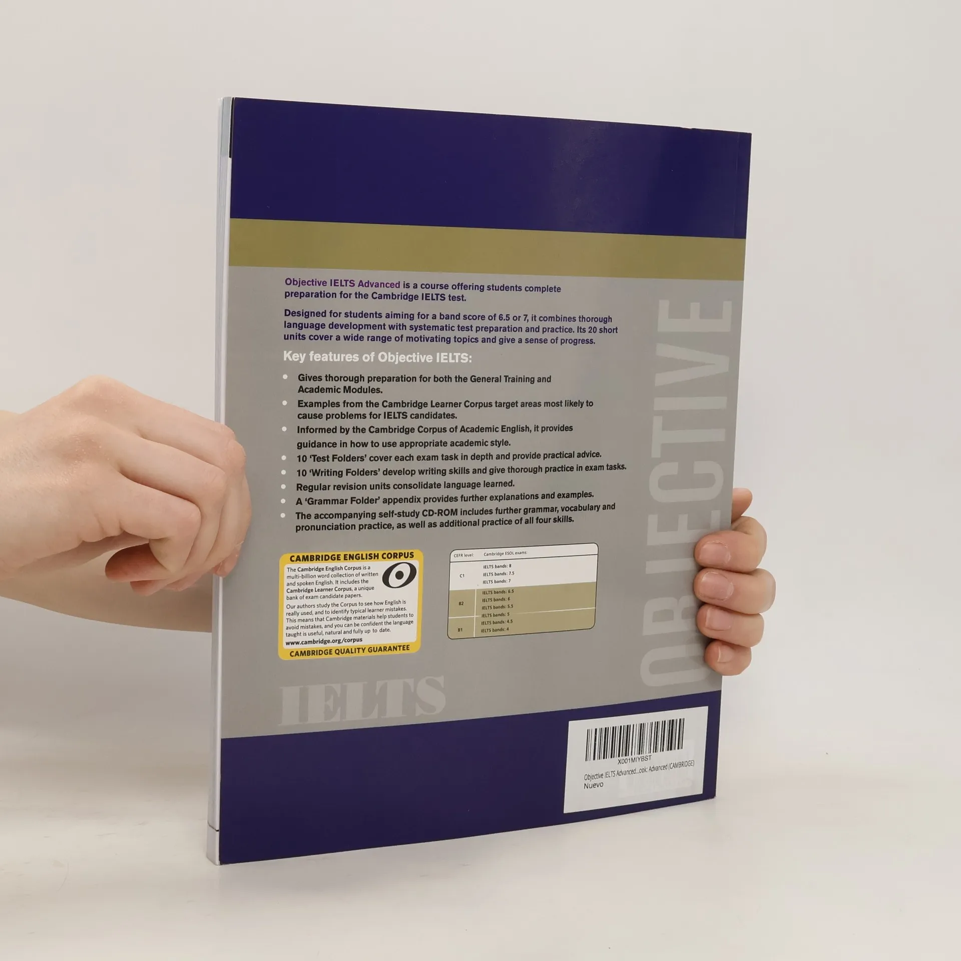 Objective IELTS is a 2-level IELTS preparation course providing comprehensive training for both the Academic and General Training modules. The course is uniquely informed by the Cambridge Learner Corpus, using analysis of real IELTS candidate papers. The 2 levels of Objective IELTS can be used on their own or consecutively so that lower-level students requiring a high band score can start preparing early.