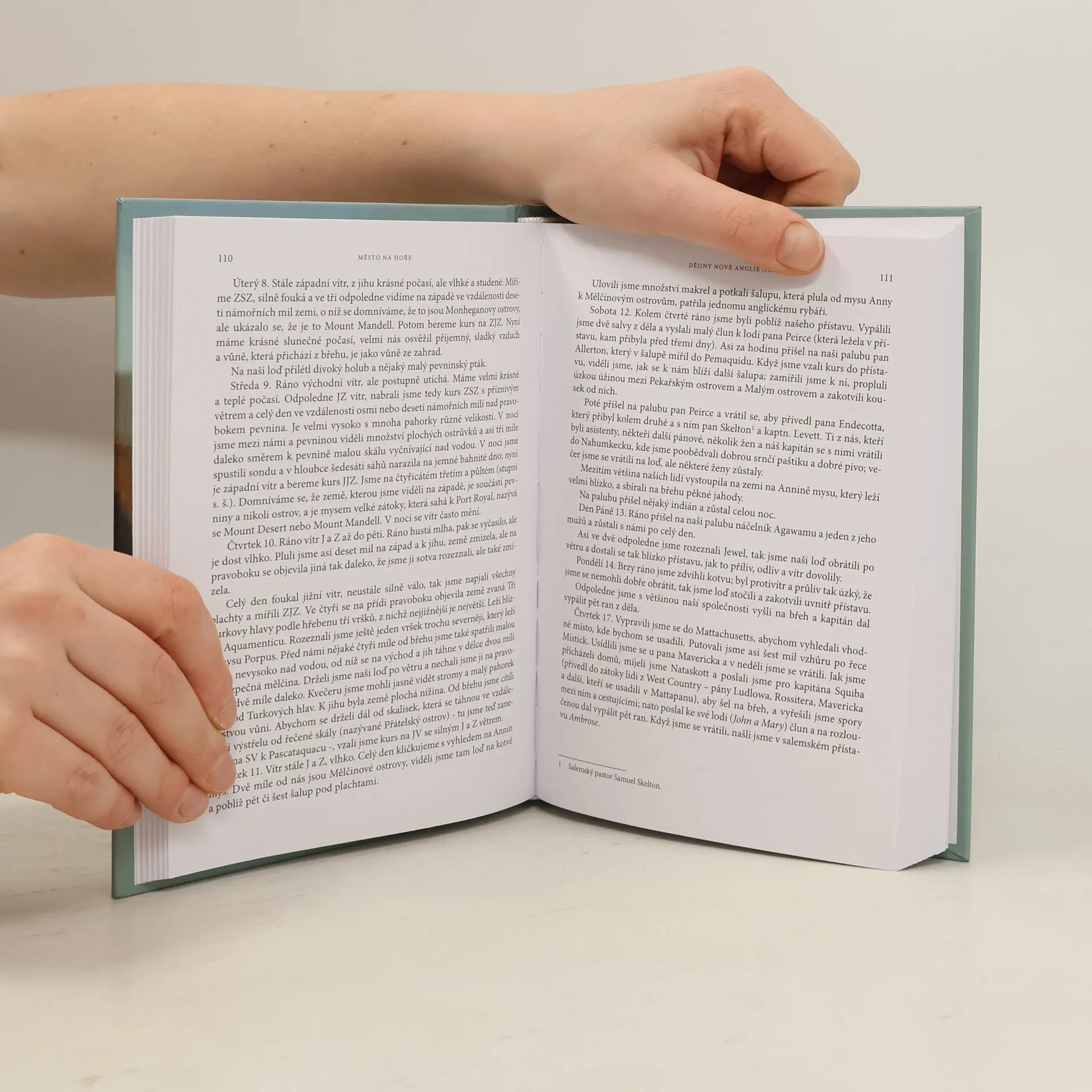 Novoanglické puritánství tak, jak je běžně vnímáno v rámci našeho civilizačního okruhu, by bylo spíše temnou skvrnou na jeho tváři. Šarlatové písmeno, despocie fanatických sektářů a mravně přepjatých patriarchů je nicméně výplodem literárně-dějepisné reflexe 19. a počátku 20. století. Puritánskou kolonii Masachusetts od počátku tvořila pestrá mozaika osobností, zájmů, nadějí a osudů, které se spolu učily v rámci doktríny vycházet tak, aby smělý migrační záměr neztroskotal. Bezprostřední vjem tohoto strhujícího procesu zprostředkují zápisky dlouholetého guvernéra Johna Winthropa; připojené studie pak zachycují celou škálu výzev a konfrontací, jimž byli puritáni vystaveni, od drsného prostředí přes vnitřní nesváry, rodinná dramata, existenci nestandardních individualit až po nesnadné setkávání a střetávání s domorodými národy. Výsledný obraz je pro čtenáře mnohem poutavější a autentičtější než ono biblické město na hoře, jak si je symbolicky přisvojila americká státní tradice.