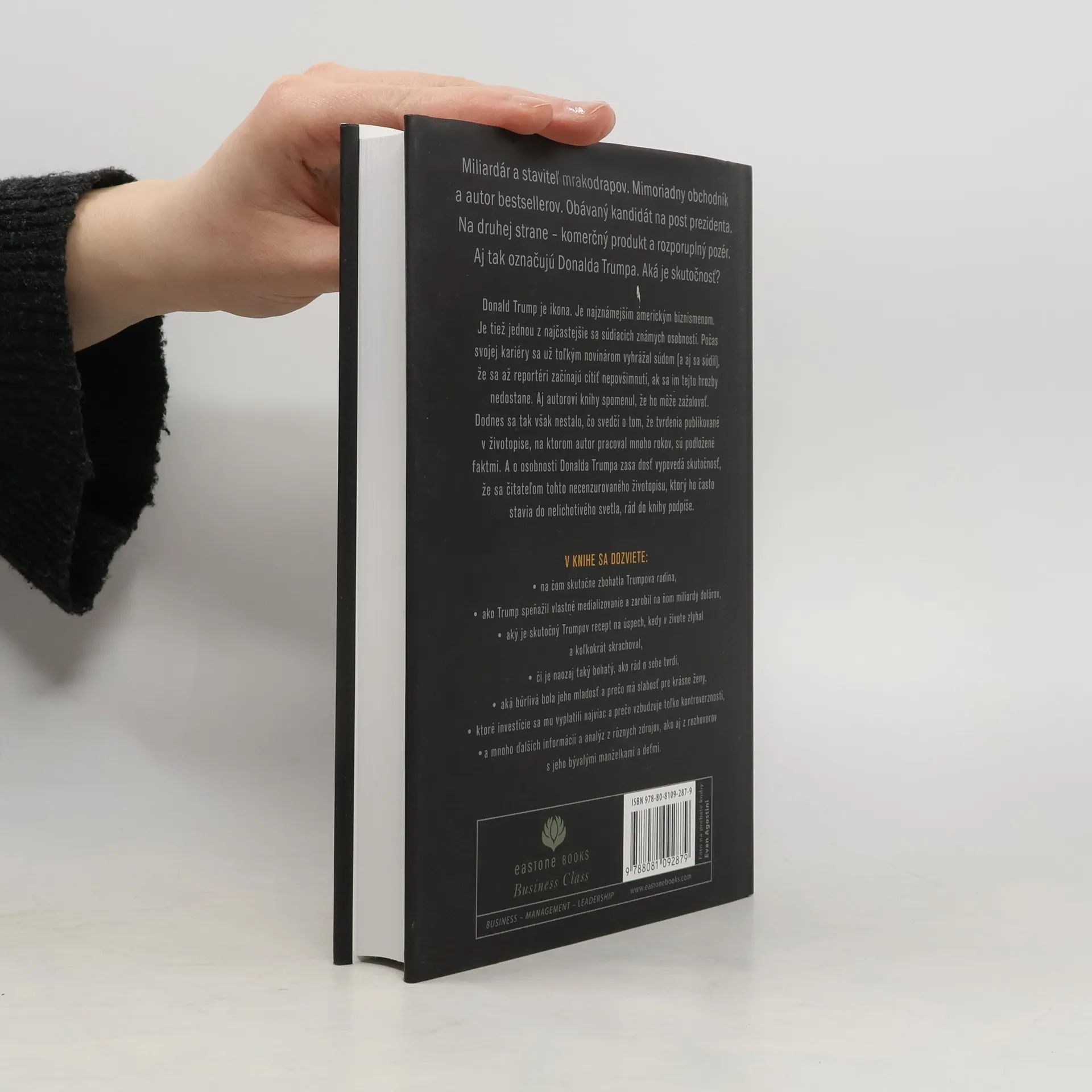 Donald Trump je ikona. Je najznámejším americkým biznismenom. Je tiež jednou z najčastejšie sa súdiacich známych osobností. Počas svojej kariéry sa už toľkým novinárom vyhrážal súdom (a aj sa súdil), že sa až reportéri začínajú cítiť nepovšimnutí, ak sa im tejto hrozby nedostane. Aj autorovi knihy spomenul, že ho môže zažalovať. Dodnes sa tak však nestalo, čo svedčí o tom, že tvrdenia publikované v tomto necenzurovanom životopise, na ktorom autor pracoval mnoho rokov, sú podložené faktami. V knihe sa dozviete: na čom skutočne zbohatla Trumpova rodina, aký je skutočný Trumpov recept na úspech, kedy v živote zlyhal a koľkokrát skrachoval, či je naozaj taký bohatý, ako rád o sebe tvrdí, aká búrlivá bola jeho mladosť a prečo má slabosť pre krásne ženy, ktoré investície sa mu vyplatili najviac a prečo vzbudzuje toľko kontroverznosti a mnoho ďalších informácií a analýz z rôznych zdrojov, ako aj z rozhovorov s jeho bývalými manželkami a deťmi.