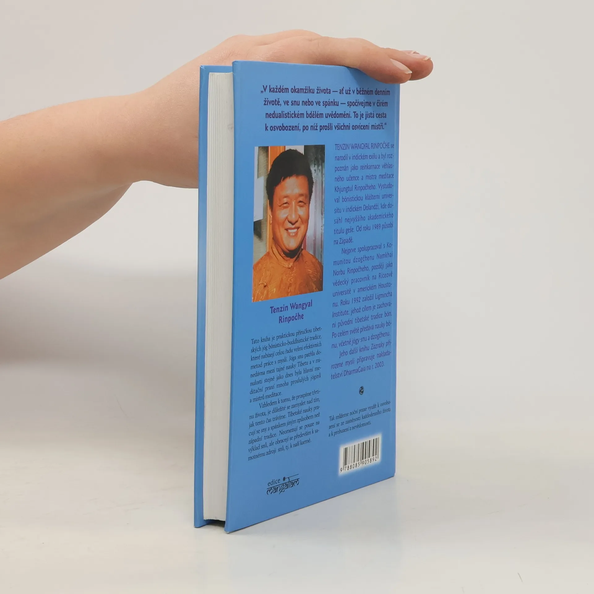 Kniha tibetského mistra meditace mladší generace bönistického směru dzogčhenu "učení o velké dokonalosti" prezentuje moderním jazykem základní témata starobylé jógy snění: povaha a duhy snů i jejich využití v praxi. Tato kniha je praktickou příručkou tibetských jóg bönisticko-buddhistické tradice, které nabízejí celou řadu velmi efektivních metod práce s myslí. Jóga snu patřila donedávna mezi tajné nauky Tibetu a v minulosti stejně jako dnes byla hlavní meditační praxí mnoha proslulých jóginů a mistrů meditace. Vzhledem k tomu, že prospíme třetinu života, je důležité se zamyslet nad tím, jak tento čas trávíme. Tibetské nauky pracují se sny a spánkem jiným způsobem než západní tradice. Neomezují se pouze na výklad snů, ale obracejí se především k samotnému zdroji snů, tj. k naší karmě. Tak můžeme noční praxe využít k osvobození se ze zasněnosti každodenního života a k probuzení z nevědomosti. V každém okamžiku života - ať už v běžném denním životě, ve snu nebo ve spánku - spočívejme v čirém nedualistickém bdělém uvědomění. To je jistá cesta k osvobození, po níž prošli všichni osvícení mistři."