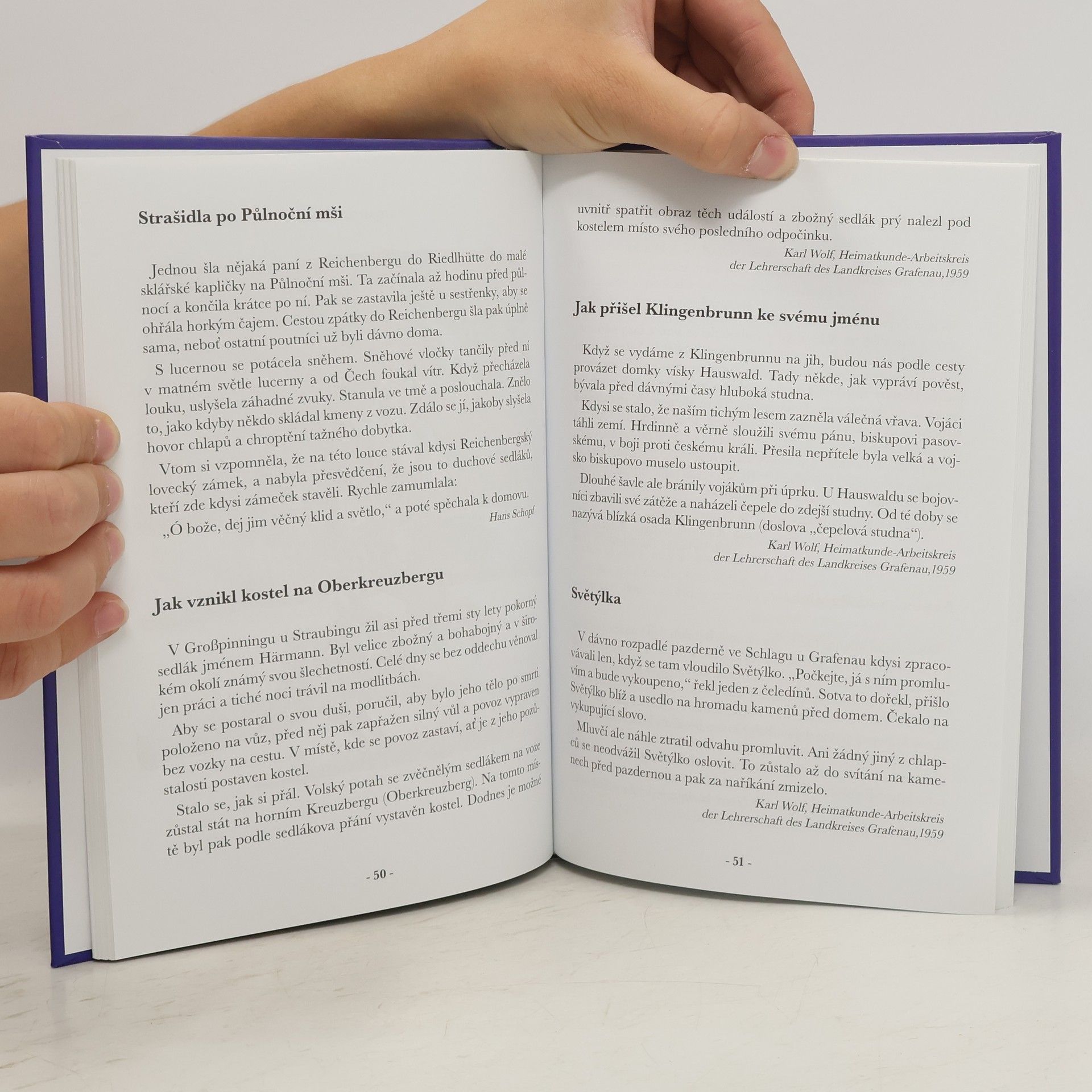 Kniha od Hanse Schopfa obsahuje 113 lidových pověstí a vyprávění z trojmezí Bavorska, Čech a Rakouska, doprovázených ilustracemi malířky Susanne Zuda. Schopf shromáždil materiál po léta, přičemž se inspiroval atmosférou zimních večerů, kdy se rodiny shromažďovaly a vyprávěly si příběhy. Z celkového počtu pověstí pochází 50 z Bavorského lesa, 53 z Šumavy a 10 z rakouského Mühlviertelu. Mezi nimi se nachází příběhy o sklářském skřítku Durandlovi a legendy o zlé Wecklin, která byla krutou hraběnkou a podle pověsti trpí v Roklanském jezeře. Historie této postavy, narozené jako Maria Maximiliana Genoveva Drexlerová, je spojena s reálnými událostmi, které se uchovaly v lidovém podání. Kniha se snaží zachovat tradici ústního vyprávění a vyzývá čtenáře, aby pověsti předávali dalším generacím. Texty jsou dokumentovány pro vědecké a etnografické účely, s poznámkami k místům a historickým souvislostem. Kniha obsahuje také rejstřík a je obohacena o historické fotografie a snímky masek. Cílem je udržet živou paměť a tradici vyprávění v komunitách.