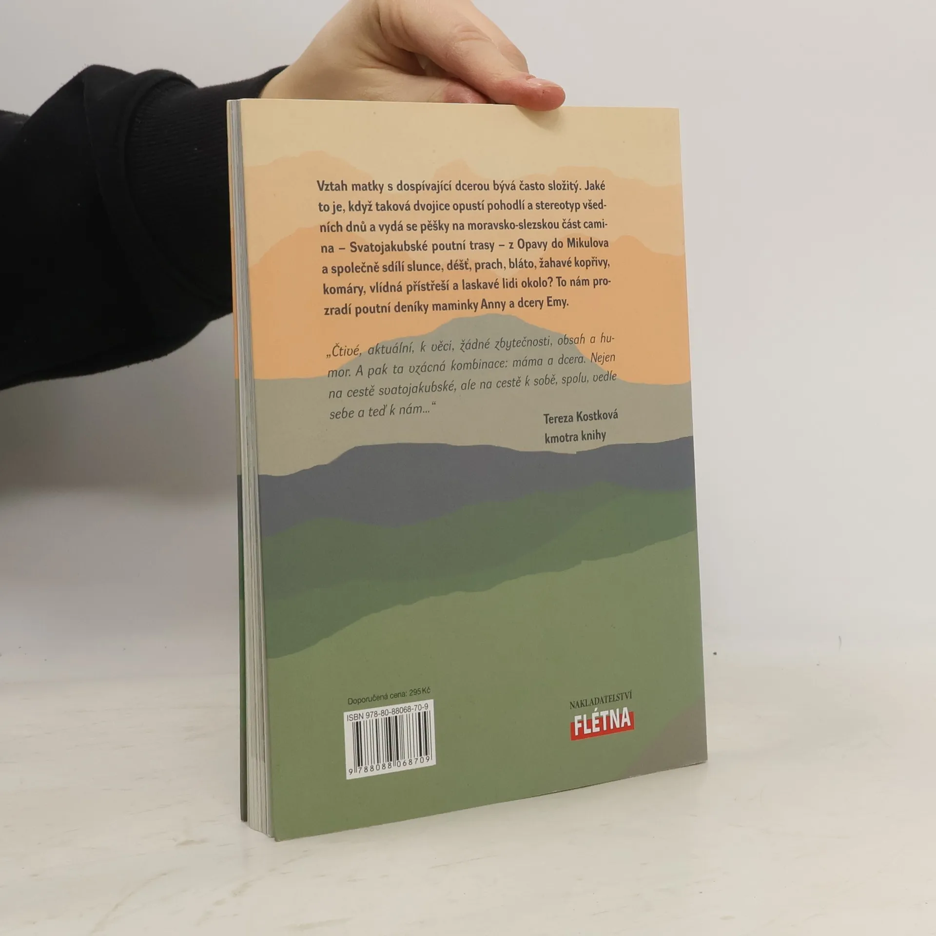 Vztah matky s dospívající dcerou bývá zpravidla vším, jen ne klidným a harmonickým mezigeneračním soužitím. Spíše neustálým testem rodičovské lásky. Jaké to je, když taková dvojice opustí stereotyp všedních dnů a vydá se pěšky na moravsko-slezskou část camina – Svatojakubské poutní trasy – z Opavy do Mikulova a společně sdílí slunce, déšť, prach, bláto, žahavé kopřivy, komáry, vlídná přístřeší a laskavé lidi okolo? To nám prozradí poutní deníky maminky Anny a dcery Emy. "Čtivé, aktuální, k věci, žádné zbytečnosti, obsah a humor. A pak ta vzácná kombinace: máma a dcera. Nejen na cestě svatojakubské, ale na cestě k sobě, spolu, vedle sebe a teď k nám…" Tereza Kostková, kmotra knihy