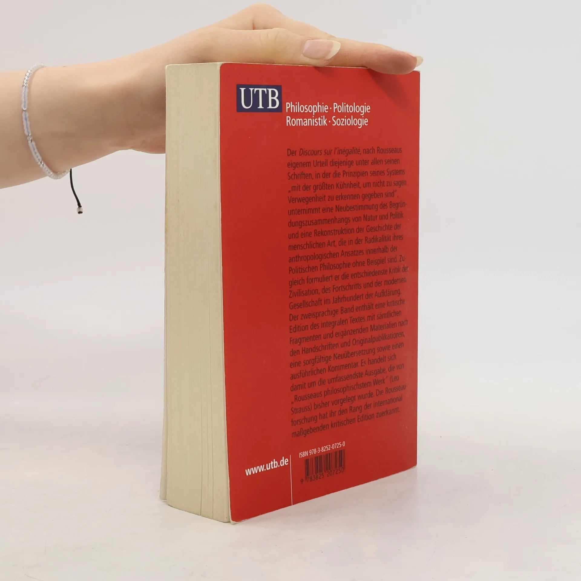 Der Discours sur l'inegalite, nach Rousseaus eigenem Urteil diejenige unter allen seinen Schriften, in der die Prinzipien seines Systems'mit der größten Kühnheit, um nicht zu sagen Verwegenheit zu erkennen gegeben sind', unternimmt eine Neubestimmung des Begründungszusammenhangs von Natur und Politik und eine Rekonstruktion der Geschichte der menschlichen Art, die in der Radikalität ihres anthropologischen Ansatzes innerhalb der Politischen Philosophie ohne Beispiel sind. Zugleich formuliert er die entschiedenste Kritik der Zivilisation, des Fortschritts und der modernen Gesellschaft im Jahrhundert der Aufklärung. Der zweisprachige Band enthält eine kritische Edition des integralen Textes mit sämtlichen Fragmenten und ergänzenden Materialien nach den Handschriften und Originalpublikationen, eine sorgfältige Neuübersetzung sowie einen ausführlichen Kommentar. Es handelt sich damit um die umfassendste Ausgabe, die von'Rousseaus philosophischstem Werk'(Leo Strauss) bisher vorgelegt wurde. Die Rousseauforschung hat ihr den Rang der international maßgebenden kritischen Edition zuerkannt.
