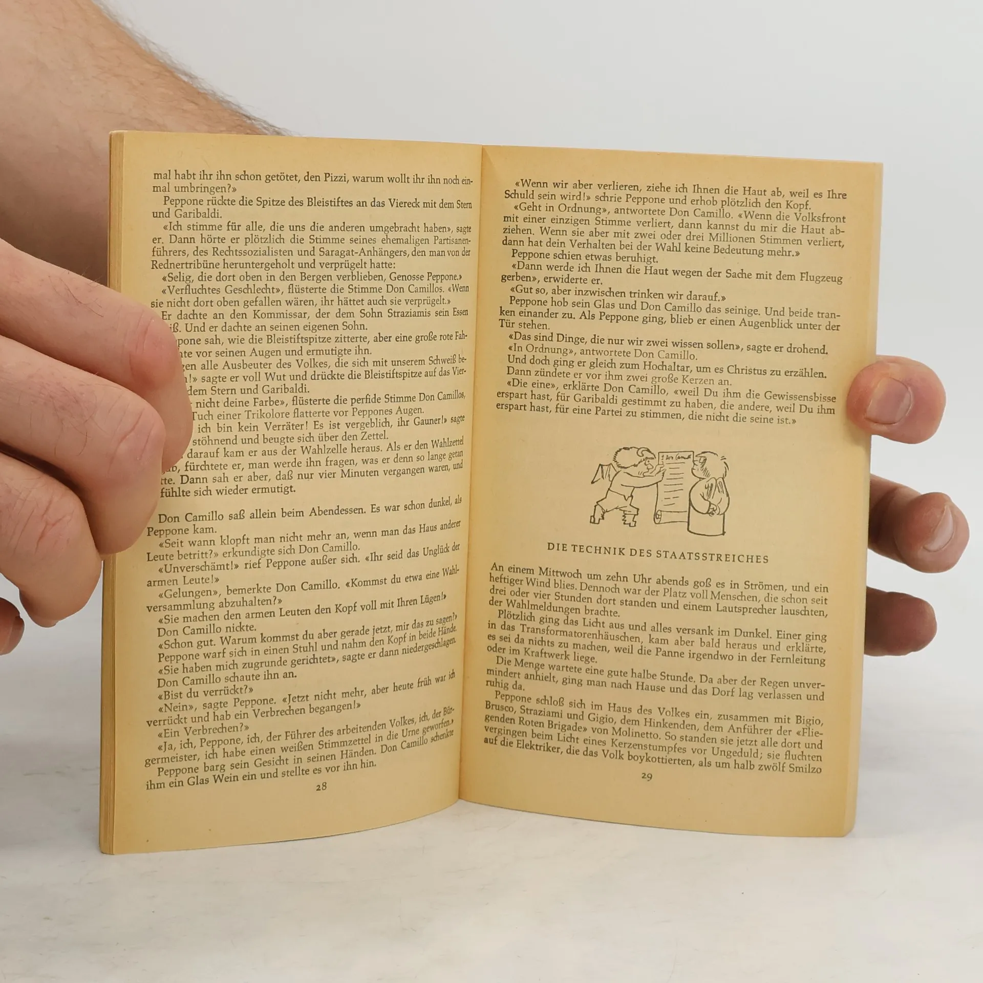 Kein Wunder, daß dieser (mit dem unvergeßlichen Fernandel verfilmte) Roman eines der erfolgreichsten Bücher unserer Zeit wurde. In einer Epoche unmenschlicher Kämpfe zwischen den Ideologien versöhnen die pointenknisternden Erlebnisse eines rauflustigen Landpfarrers und seines hitzköpfigen politischen Rivalen durch ihre verblüffende Komik und verschmitzte Lebensklugheit. Die politischen Konflikte im heutigen Italien bezeugen erneut die zeitlose Aktualität dieses Bestsellers der Weltliteratur.