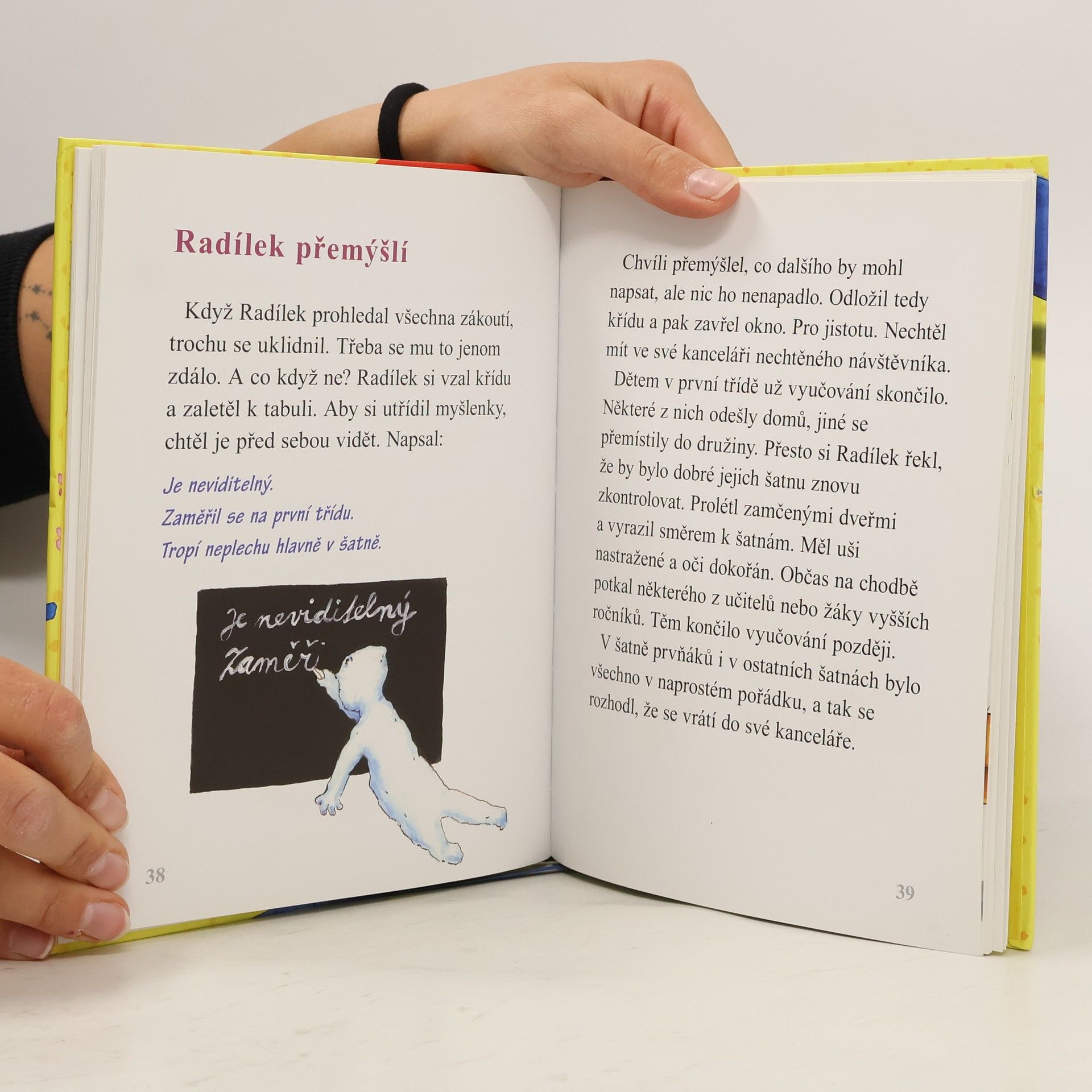 Radílka jistě dobře znáte. Je to školní strašidlo, ze kterého se stal školní detektiv. Stará se o to, aby bylo ve škole všechno v pořádku a nedělo se tam nic nekalého. V novém školním roce však žáci zjistí, že se jim ve třídě i v šatně ztrácejí věci a někdo jim dělá naschvály. Pátrání po tom, kdo má to všechno na svědomí, se ujímá Radílek. Když mu pachatel stále uniká, nastraží důmyslnou léčku. Jak se Radílkovi nakonec podaří pachatele dopadnout? Nebude to ale jen tak obyčejný zloděj nebo darebák. Kdo tedy? Jestli jste zvědaví, nezbývá než se s chutí pustit do čtení. Knížka je určena čtenářům nižšího školního věku i předškolákům. Rozčlenění textu do krátkých kapitol i autorský jazyk odpovídají požadavkům prvního čtení. Hodí se i k předčítání rodiči nebo učitelkami v mateřských školách.