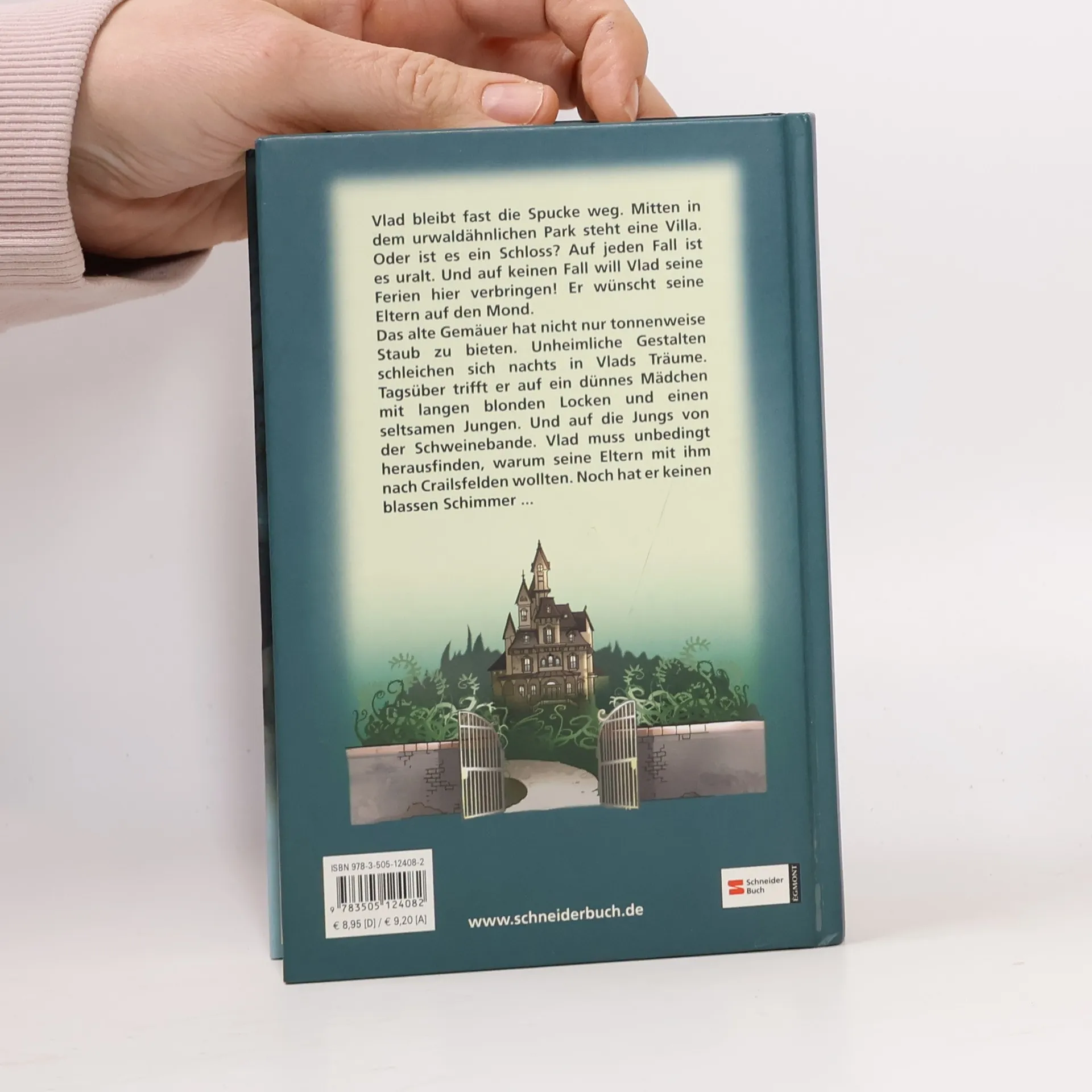 Vlad bleibt fast die Spucke weg. Mitten in dem urwaldähnlichen Park steht eine Villa - oder ist es ein Schloss? Auf jeden Fall ist es uralt. Und auf keinen Fall will Vlad seine Ferien hier verbringen! Das alte Gemäuer hat nicht nur tonnenweise Staub zu bieten. Unheimliche Gestalten schleichen sich nachts in Vlads Träume. Tagsüber trifft er auf Faye, ein dünnes Mädchen mit langen blonden Locken, und einen seltsamen Jungen namens Wolf. Und auf die Jungs von der Schweinebande. Vlad muss unbedingt herausfinden, warum seine Eltern mit ihm nach Crailsfelden wollten. Noch hat er keinen blassen Schimmer...