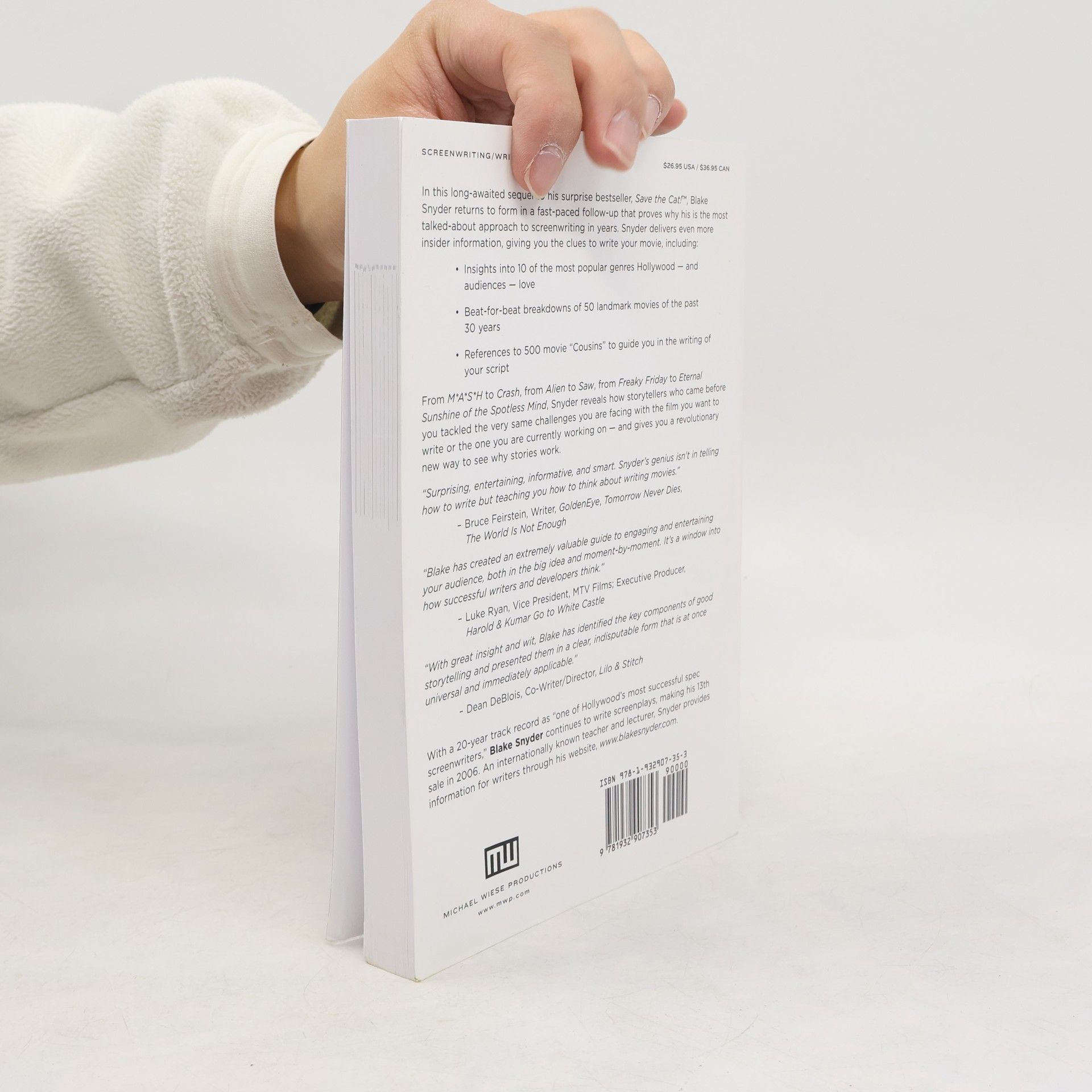 In the long-awaited sequel to his surprise bestseller, Save the Cat!, author and screenwriter Blake Snyder returns to form in a fast-paced follow-up that proves why his is the most talked-about approach to screenwriting in years. In the perfect companion piece to his first book, Snyder delivers even more insider's information gleaned from a 20-year track record as ?one of Hollywood's most successful spec screenwriters, ? giving you the clues to write your movie. Designed for screenwriters, novelists, and movie fans, this book gives readers the key breakdowns of the 50 most instructional movies from the past 30 years. From M*A*S*H to Crash, from Alien to Saw, from 10 to Eternal Sunshine of the Spotless Mind, Snyder reveals how screenwriters who came before you tackled the same challenges you are facing with the film you want to write ? or the one you are currently working on.