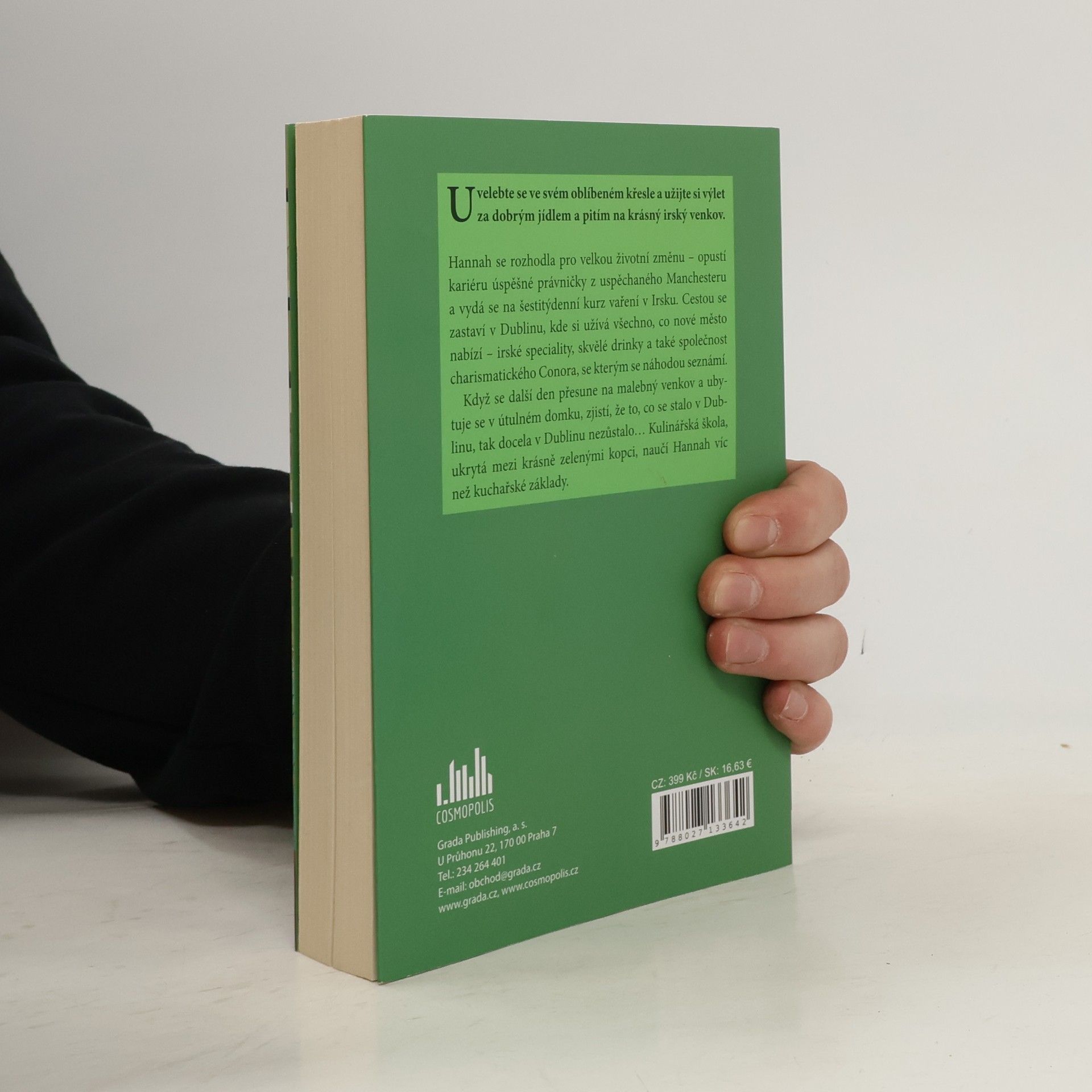 Uvelebte se v oblíbeném křesle a užijte si výlet za dobrým jídlem a pitím na krásný irský venkov. Hannah se rozhodla pro velkou životní změnu – vymění kariéru úspěšné právničky z uspěchaného Manchesteru za šestitýdenní kurz vaření v Irsku. Cestou se zastaví v Dublinu, kde si užívá všechno, co nové město nabízí – irské speciality, skvělé drinky a také společnost charismatického Conora, se kterým se náhodou seznámí. Když se další den přesune na malebný venkov a ubytuje se v útulném domku, zjistí, že to, co se stalo v Dublinu, tak docela v Dublinu nezůstalo… Kulinářská škola ukrytá mezi krásně zelenými kopci naučí Hannah víc než kuchařské základy.