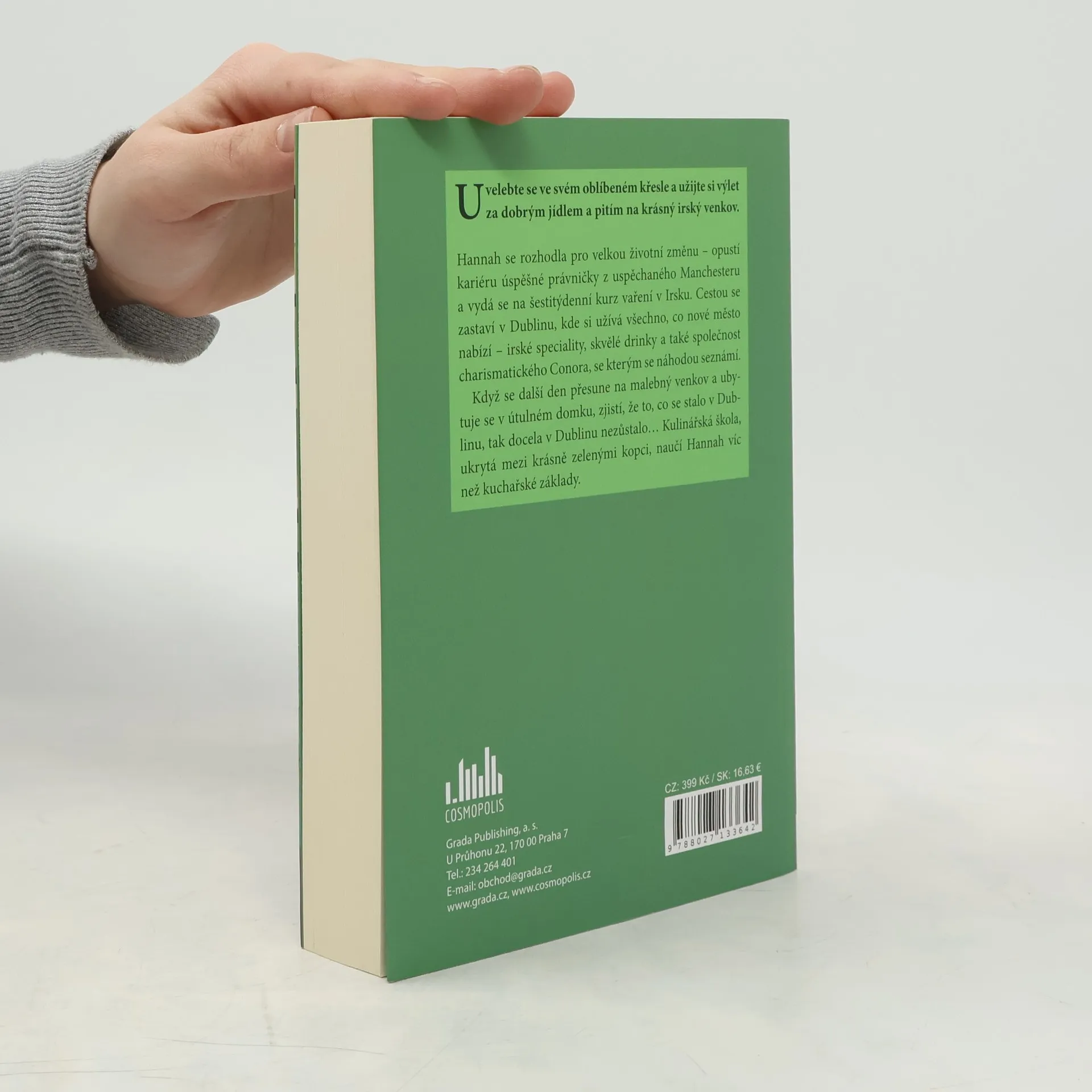 Uvelebte se v oblíbeném křesle a užijte si výlet za dobrým jídlem a pitím na krásný irský venkov. Hannah se rozhodla pro velkou životní změnu – vymění kariéru úspěšné právničky z uspěchaného Manchesteru za šestitýdenní kurz vaření v Irsku. Cestou se zastaví v Dublinu, kde si užívá všechno, co nové město nabízí – irské speciality, skvělé drinky a také společnost charismatického Conora, se kterým se náhodou seznámí. Když se další den přesune na malebný venkov a ubytuje se v útulném domku, zjistí, že to, co se stalo v Dublinu, tak docela v Dublinu nezůstalo… Kulinářská škola ukrytá mezi krásně zelenými kopci naučí Hannah víc než kuchařské základy.