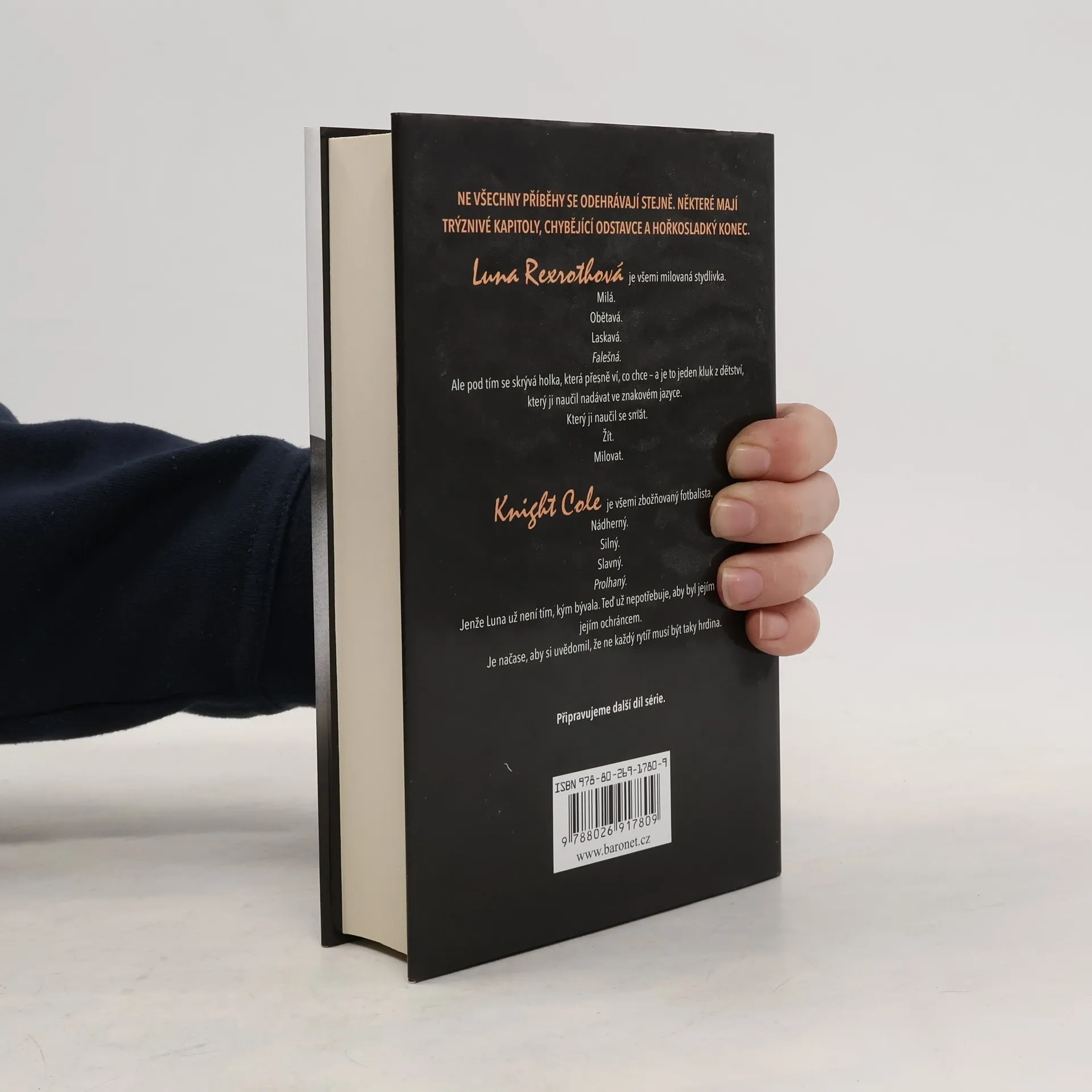 Luna Rexrothová je všemi milovaná stydlivka. Milá. Obětavá. Laskavá. Falešná. Ale pod tím se skrývá holka, která přesně ví, co chce – a je to jeden kluk z dětství, který ji naučil nadávat ve znakové řeči. Který ji naučil se smát. Žít. Milovat. Knight Cole je všemi zbožňovaný fotbalista. Nádherný. Silný. Slavný. Prolhaný. Jenže Luna už není tím, kým bývala. Teď už nepotřebuje, aby byl jejím rytířem, jejím ochráncem. Je načase, aby si uvědomil, že ne každý rytíř musí být taky hrdina.