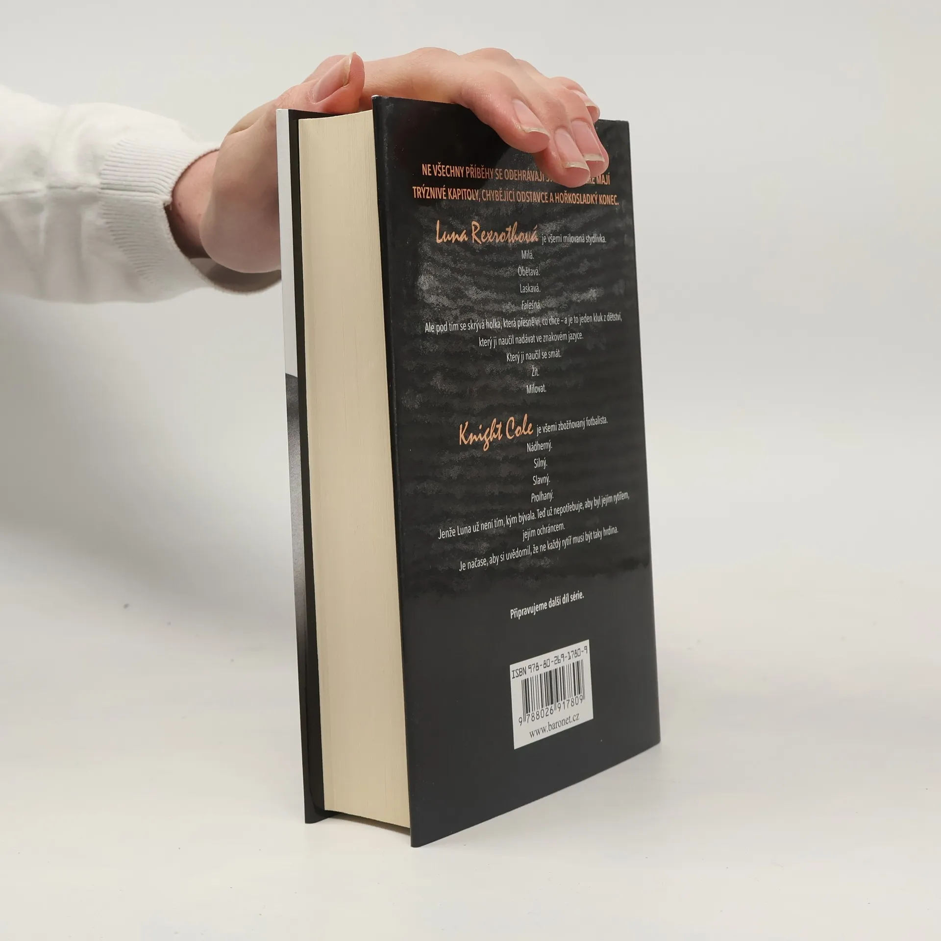 Luna Rexrothová je všemi milovaná stydlivka. Milá. Obětavá. Laskavá. Falešná. Ale pod tím se skrývá holka, která přesně ví, co chce – a je to jeden kluk z dětství, který ji naučil nadávat ve znakové řeči. Který ji naučil se smát. Žít. Milovat. Knight Cole je všemi zbožňovaný fotbalista. Nádherný. Silný. Slavný. Prolhaný. Jenže Luna už není tím, kým bývala. Teď už nepotřebuje, aby byl jejím rytířem, jejím ochráncem. Je načase, aby si uvědomil, že ne každý rytíř musí být taky hrdina.