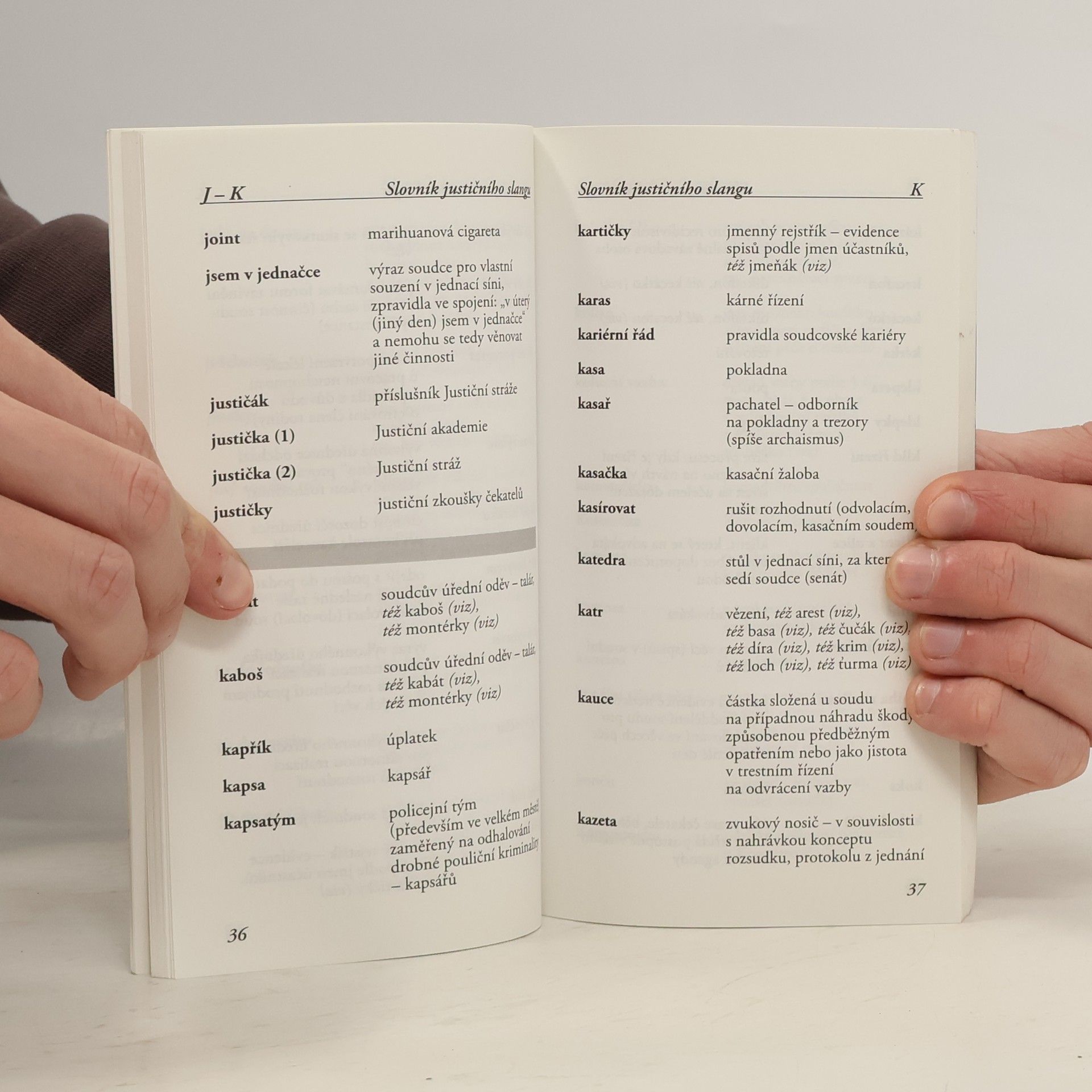 Malý výkladový slovník slangových pojmů objevujících se v právnické a zejména soudní mluvě. Jedná se o termíny, které mají mnohdy historické či jinojazyčné kořeny, ale také o pojmy vzniklé nejrůznějšími zkratkami z legislativní terminologie apod. Hlavním tvůrcem slovníčku je JUDr. Jaromír Jirsa, prezident Soudcovské unie ČR, zkušený soudce v oboru civilního práva a jeden z kmenových autorů nakladatelství Havlíček Brain Team.