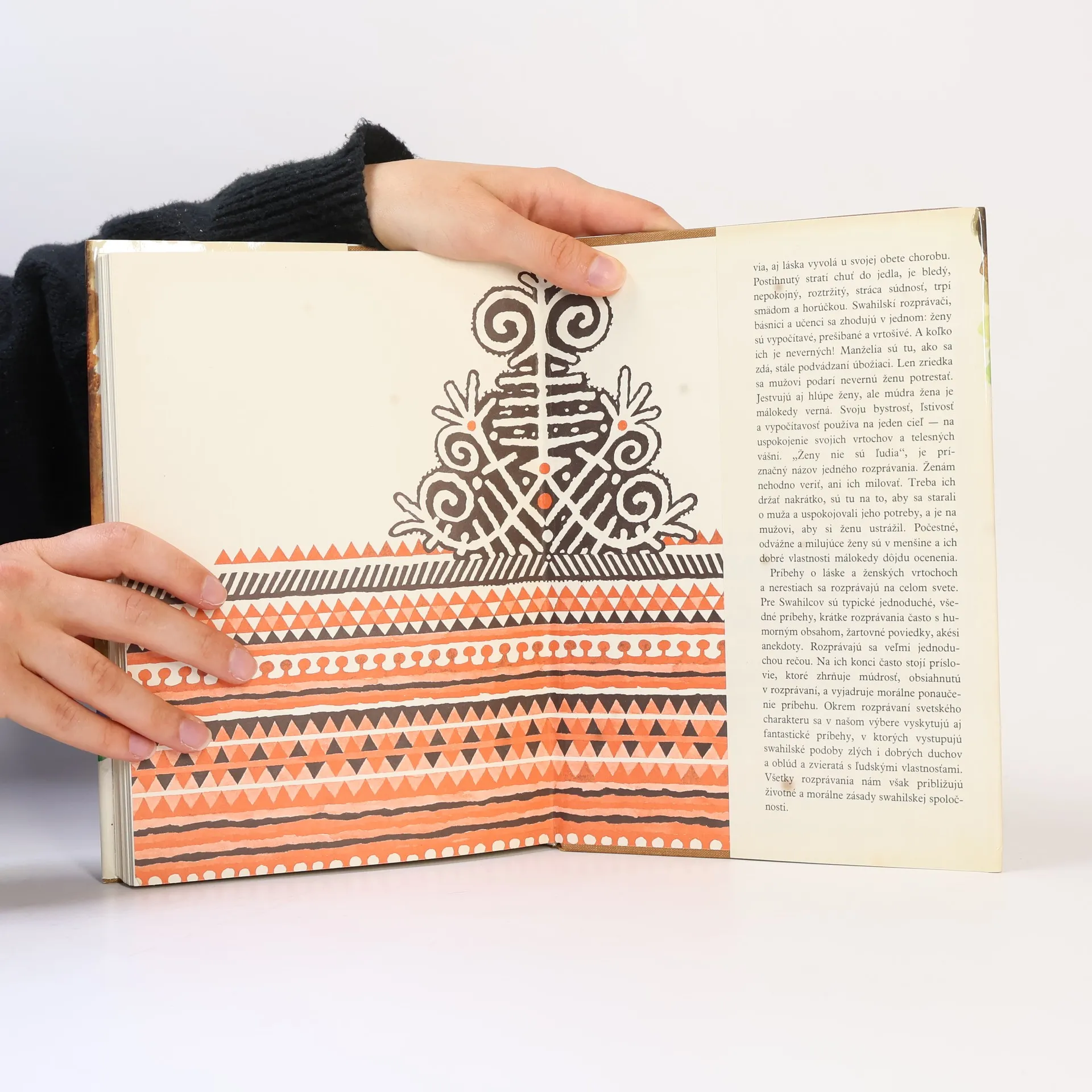 Kolískou swahilskej kultúry a civilizácie, väčšmi orientálnej ako africkej, je úzky pás východoafrického pobrežia, ktorý sa tiahne od južného Somálska až po Mozambilk.Príbehy o láske a ženských vrtochoch a nerestiach sa rozprávajú na celom svete. Pre Swahilcov sú typické jednoduché, všedné príbehy, krátke rozprávania často s humorným obsahom, žartovné poviedky, akési anekdoty. Rozprávajú sa veľmi jednoduchou rečou. Na ich konci často stojí príslovie, ktoré zhrňuje múdrosť, obsiahnutú v rozprávaní, a vyjadruje morálne ponaučenie príbehu. Okrem rozprávaní svetského charakteru sa v našom výbere vyskytujú aj fantastické príbehy, v ktorých vystupujú swahilské podoby zlých i dobrých duchov a oblúd a zvieratá s ľudskými vlastnosťami. Všetky rozprávania nám však približujú životné a morálne zásady swahilskej spoločnosti.