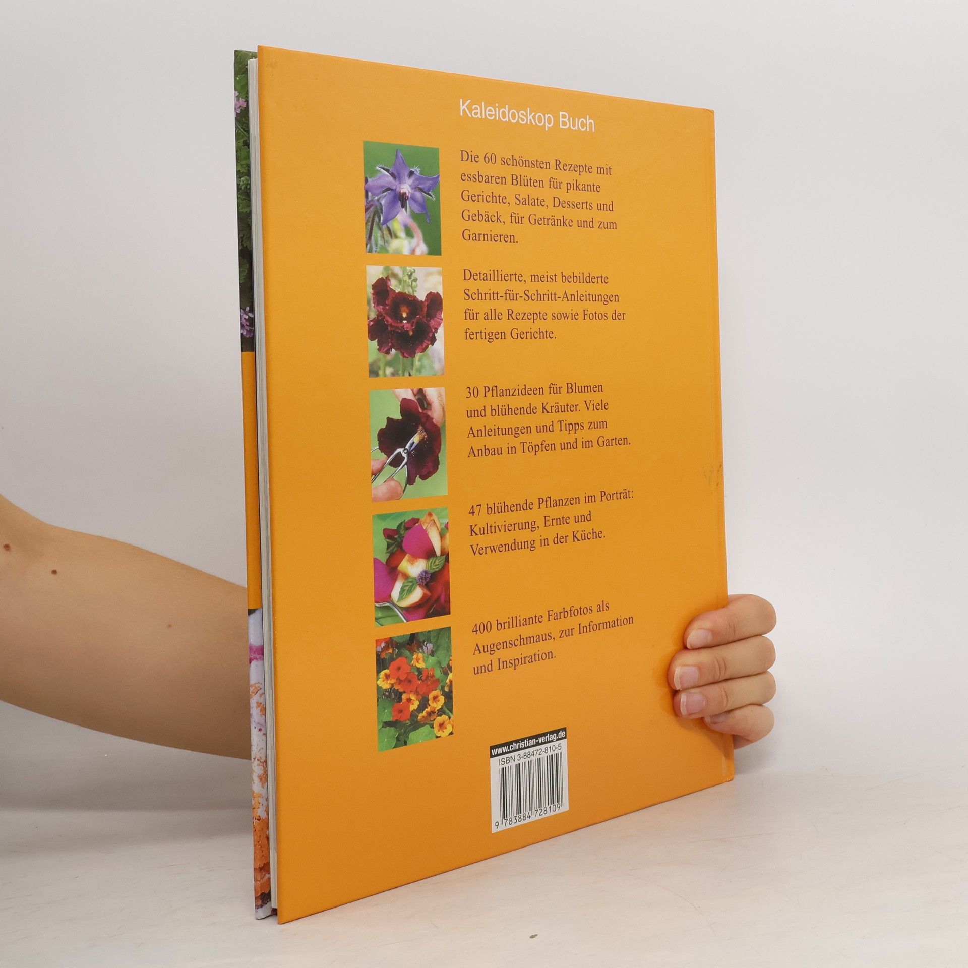 Neuauflage des wunderschön gestalteten TextBildBandes "Blüten zum Reinbeißen" (BA 7/00; damals 39.95 DM), "der in 60 Rezepten 47 Pflanzen vorstellt, die man in der Küche verwenden kann. Nach einer Einführung in die frühere Verwendung von essbaren Blüten widmet sich die Autorin dem Thema 'Blüten in der Küche' vom Schneiden und Vorbereiten bis zu Anbau und Pflege der Pflanzen, u.a. Veilchen, Rosmarin, Ringelblume. Gezeigt werden wunderschön arrangierte Blumenschalen mit detaillierten Anleitungen zum Selbermachen. Dazu Rezepte mit guten Arbeitsanleitungen, z.T. SchrittfürSchrittFotos zu Gerichten wie StockrosenNektarinenSalat, Ciabattabrot mit Oreganoblüten ... Zum Abschluss noch ein Pflanzenlexikon (Standort, Vermehrung, Verwendung, Verbreitung). Ein Buch, bei dem sich allein schon das Betrachten und Blättern lohnt, mit interessanten Rezepten für experimentierfreudige Köche." Die preiswerte Neuausgabe kann als Ersatz oder Neuausgabe empfohlen werden. (2)