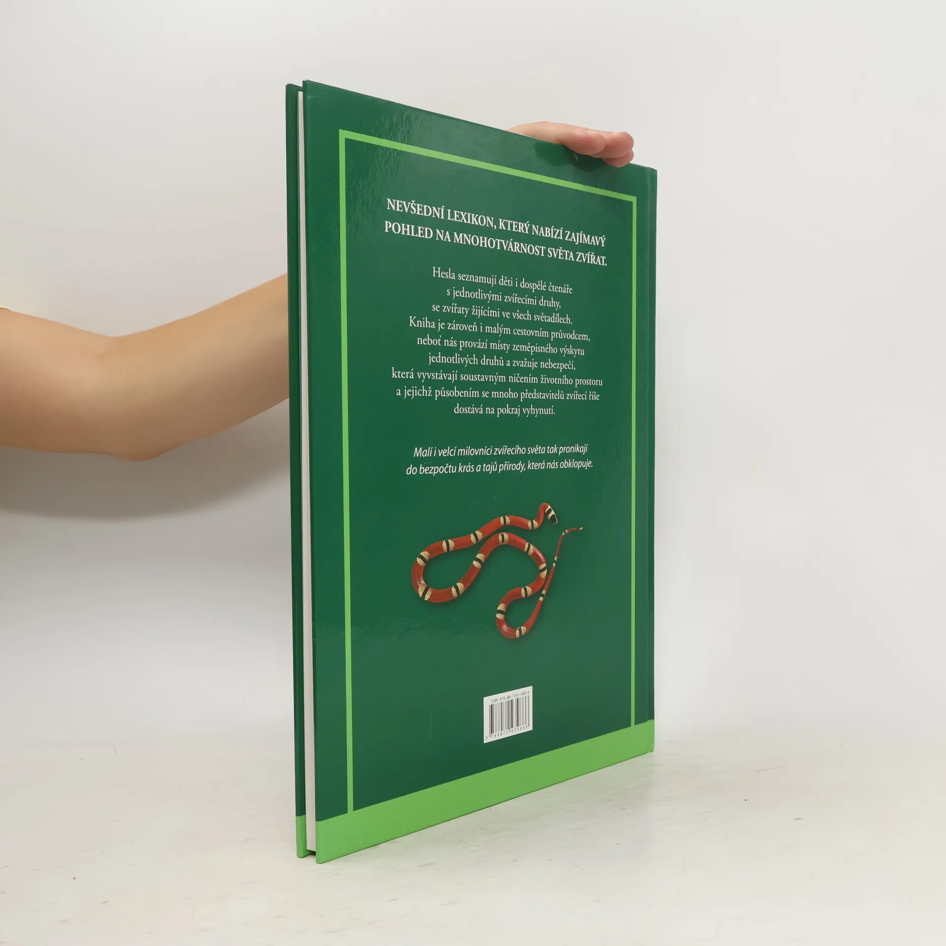 Nevšední lexikon, který nabízí zajímavý pohled na mnohotvárnost světa zvířat. Hesla seznamují děti i dospělé čtenáře s jednotlivými zvířecími druhy, se zvířaty žijícími ve všech světadílech. Kniha je zároveň i malým cestovním průvodcem, neboť nás provází místy zeměpisného výskytu jednotlivých druhů a zvažuje nebezpečí, která vyvstávají soustavným ničením životního prostoru a jejichž působením se mnoho představitelů zvířecí říše dostává na pokraj vyhynutí. Malí i velcí milovníci zvířecího světa tak pronikají do bezpočtu krás a tajů přírody, která nás obklopuje.
