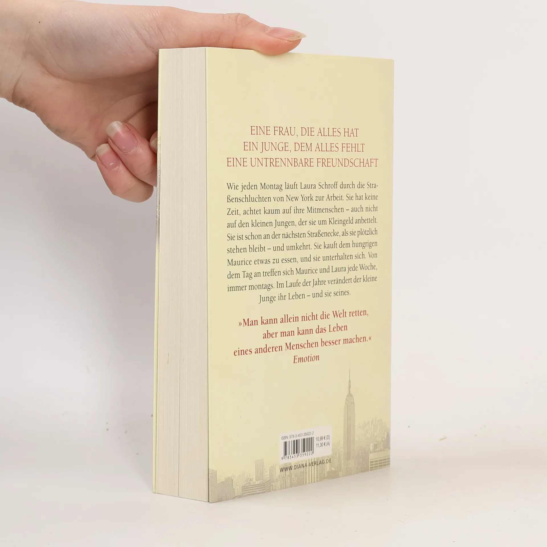 Eine Frau, die alles hat.Ein Junge, dem alles fehlt. Eine untrennbare Freundschaft. Laura ist eine erfolgreiche Verkaufsleiterin, die an einem normalen Montag durch die Straßen von New York hetzt. Sie hat keine Zeit, achtet kaum auf ihre Mitmenschen – auch nicht auf den kleinen Jungen, der sie um Kleingeld anbettelt. Sie ist schon an der nächsten Straßenecke, als sie plötzlich stehen bleibt – und umkehrt. Sie kauft dem hungrigen Maurice etwas zu essen und erfährt von seinem Leben. Von dem Tag an treffen sich Maurice und Laura jede Woche über Jahre hinweg, immer montags. Dies ist die Geschichte ihrer einzigartigen Freundschaft – die bis heute anhält.