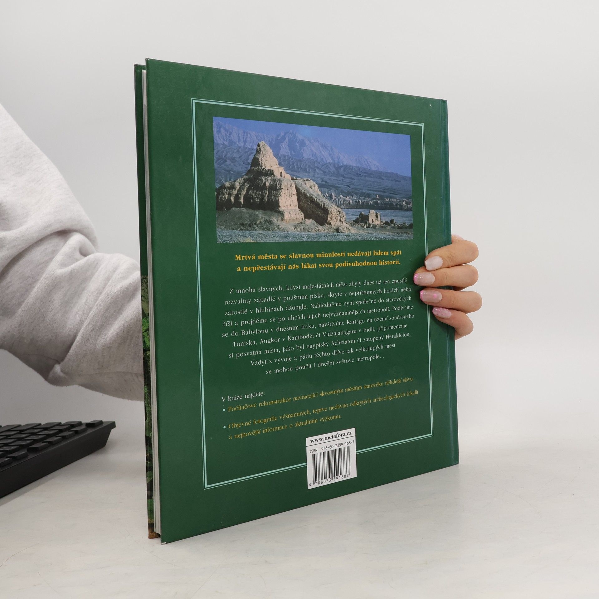 Výpravná publikace přibližuje zaniklá hlavní města dávných civilizací. Každé lokalitě je věnována dvoustrana, stručný text poskytuje základní údaje o historii a archeologickém průzkumu každé metropole. Města jsou rozdělena do kapitol podle geografických podmínek (města u moře, pouštní města, města v horách, lesní města). Zvlášní oddíl tvoří metropole, kterým vládli mocní monarchové, a města, která měla funkci posvátných náboženských středisek. Výklad doprovází množství barevných fotografií.