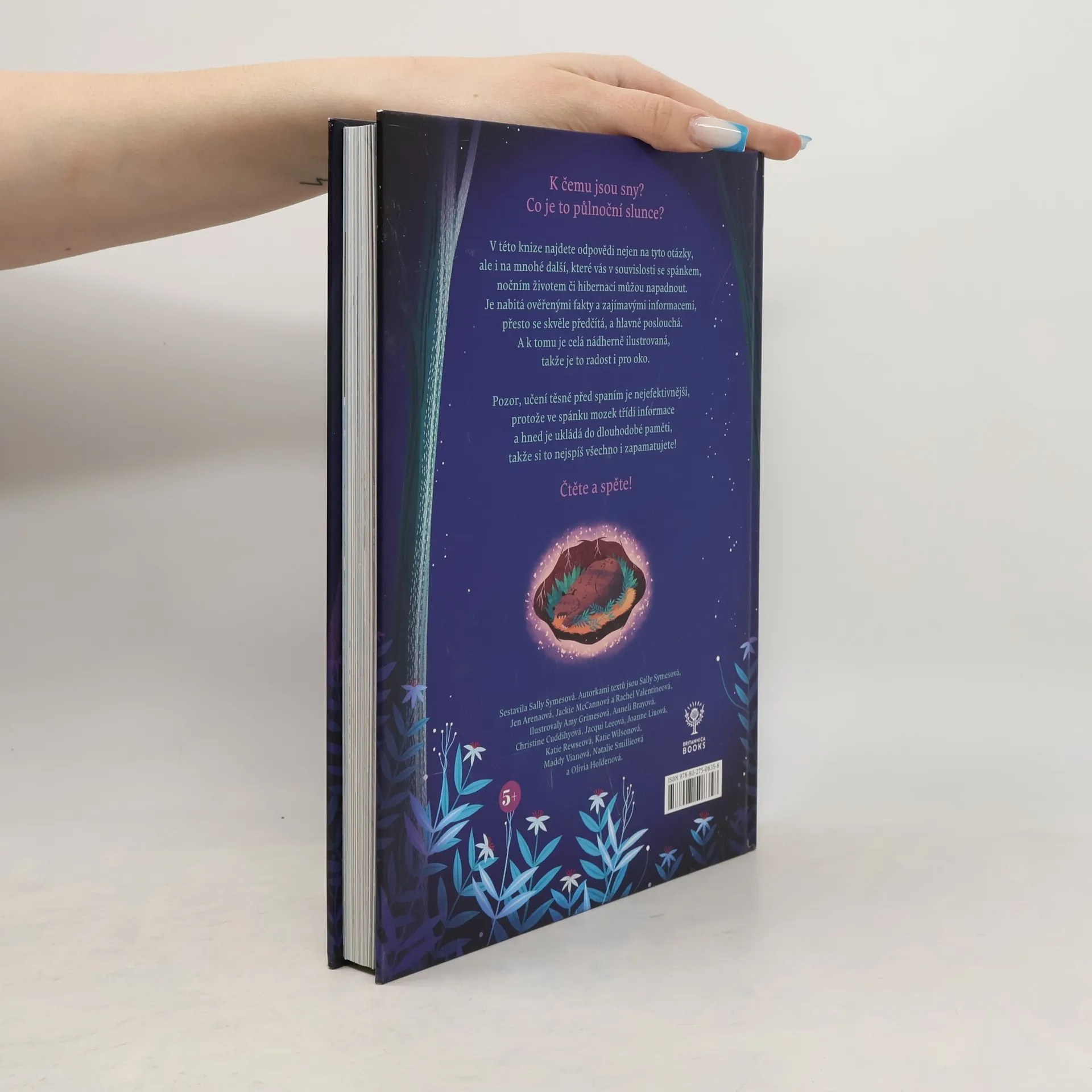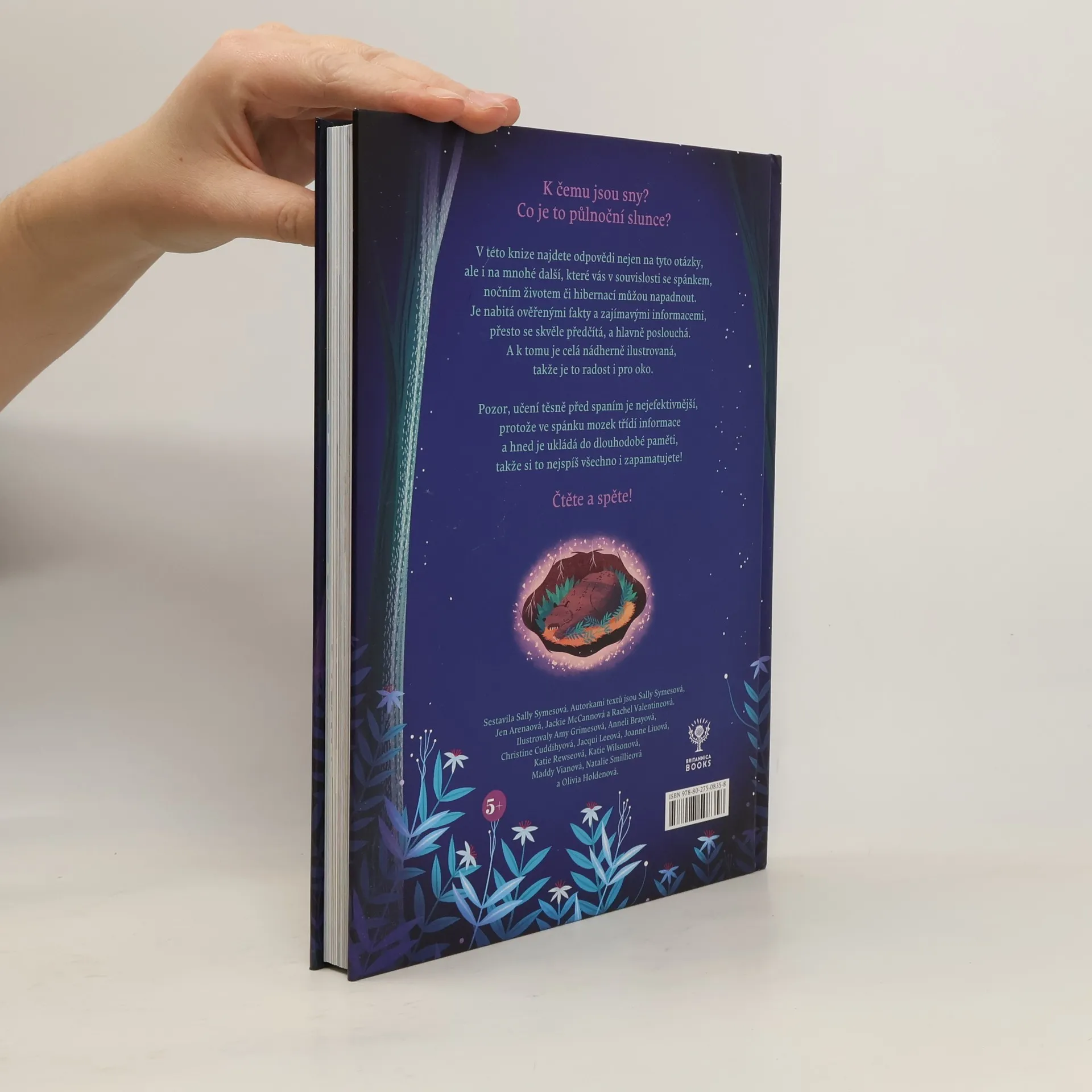 Je to nabité fakty jako encyklopedie a čte se to dětem před spaním. Co je to? Máte doma malého mudrlanta, který každou pohádku podrobí palbě nedůvěřivých otázek? Jak to, že vlk Karkulku nerozkousal, když ji sežral? Jak to, že se Popelce vešly do oříšku celé šaty, když mně se tam nevejde ani ponožka? Je to sice znakem bystré mysli, ale kdo si má ty odpovědi pořád vymýšlet. Možná by pomohlo držet se reality. A neznamená to, že musíte před spaním číst zrovna encyklopedii (i když zase tak daleko od ní nebudete). Ve třiceti kapitolách této knížky, která je jako stvořená k večernímu čtení, najdete atraktivní témata vážící se k spánku, snům, hibernaci apod. Je nabitá ověřenými fakty a zajímavými informacemi, přesto se skvěle předčítá a hlavně poslouchá. A k tomu je celá nádherně ilustrovaná, takže je to radost i pro oko. Pozor, učení těsně před spaním je nejefektivnější, protože ve spánku mozek třídí informace a bezprostředně je ukládá do dlouhodobé paměti. Takže se pak nedivte, až vám z malého rozumbrady přes noc vyroste vědátor.