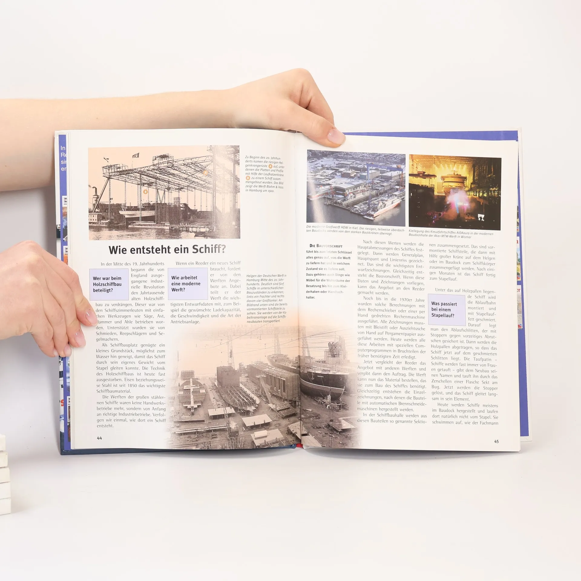 Ein einfaches Stück Holz wird das erste Gefährt des Menschen auf dem Wasser gewesen sein. Heute werden Waren mit modernen Containerschiffen über die Weltmeere transportiert, Fähren sichern schnelle Verkehrsverbindungen und Urlauber verbringen ihre Ferien auf Kreuzfahrtschiffen. Dazwischen liegt die spannende Zeit der Segelschifffahrt und eine bis heute grandiose Entwicklung der Technik, nicht nur der Dampfschifffahrt, sondern auch der Kühlfrachter, Rettungskreuzer und Öltanker.