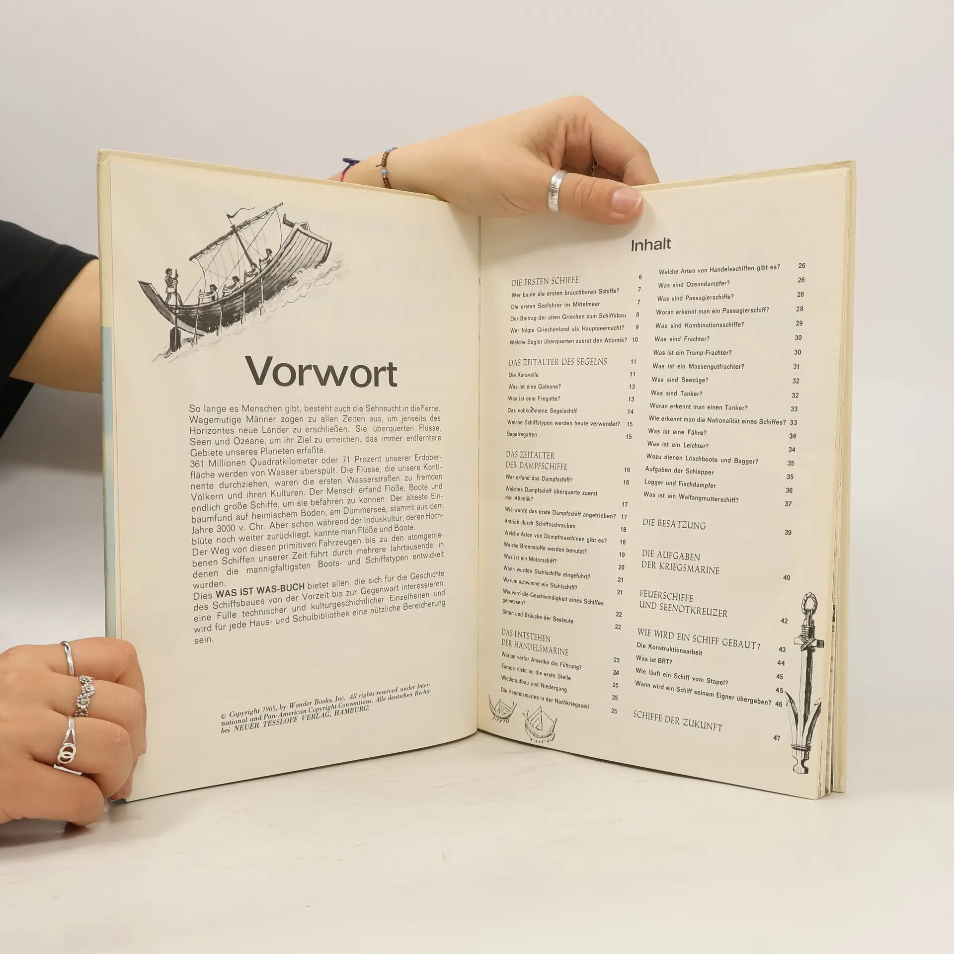 Ein einfaches Stück Holz wird das erste Gefährt des Menschen auf dem Wasser gewesen sein. Heute werden Waren mit modernen Containerschiffen über die Weltmeere transportiert, Fähren sichern schnelle Verkehrsverbindungen und Urlauber verbringen ihre Ferien auf Kreuzfahrtschiffen. Dazwischen liegt die spannende Zeit der Segelschifffahrt und eine bis heute grandiose Entwicklung der Technik, nicht nur der Dampfschifffahrt, sondern auch der Kühlfrachter, Rettungskreuzer und Öltanker.