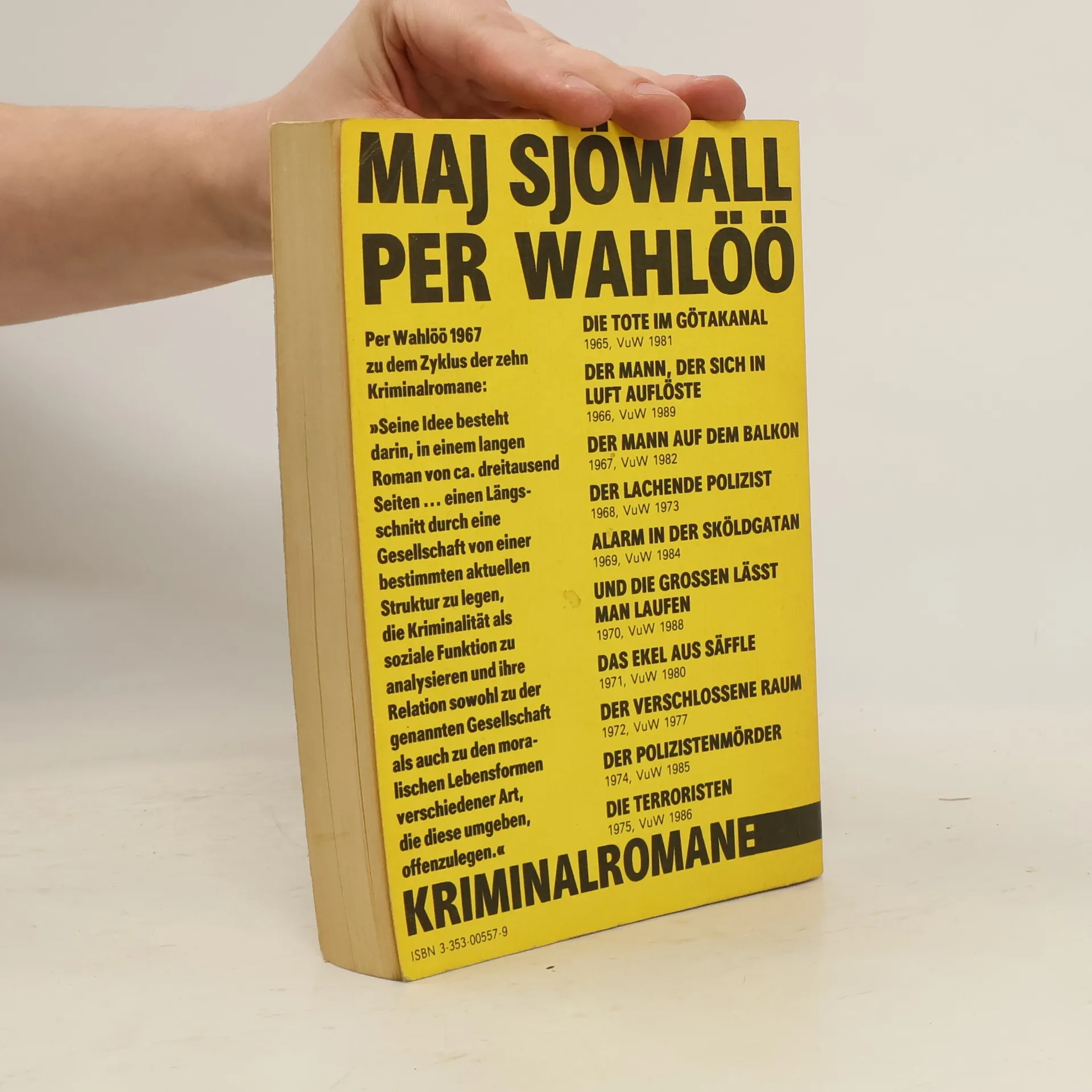 enthält die beiden Romane - Die Tote im Götakanal (Roseanna; übersetzt von Johannes Carstensen, überarbeitet von Werner Hennig)- Der Mann, der sich in Luft auflöste (Mannen som gick upp i rök; übersetzt von Johannes Carstensen, überarbeitet von Eckhard Schultz)