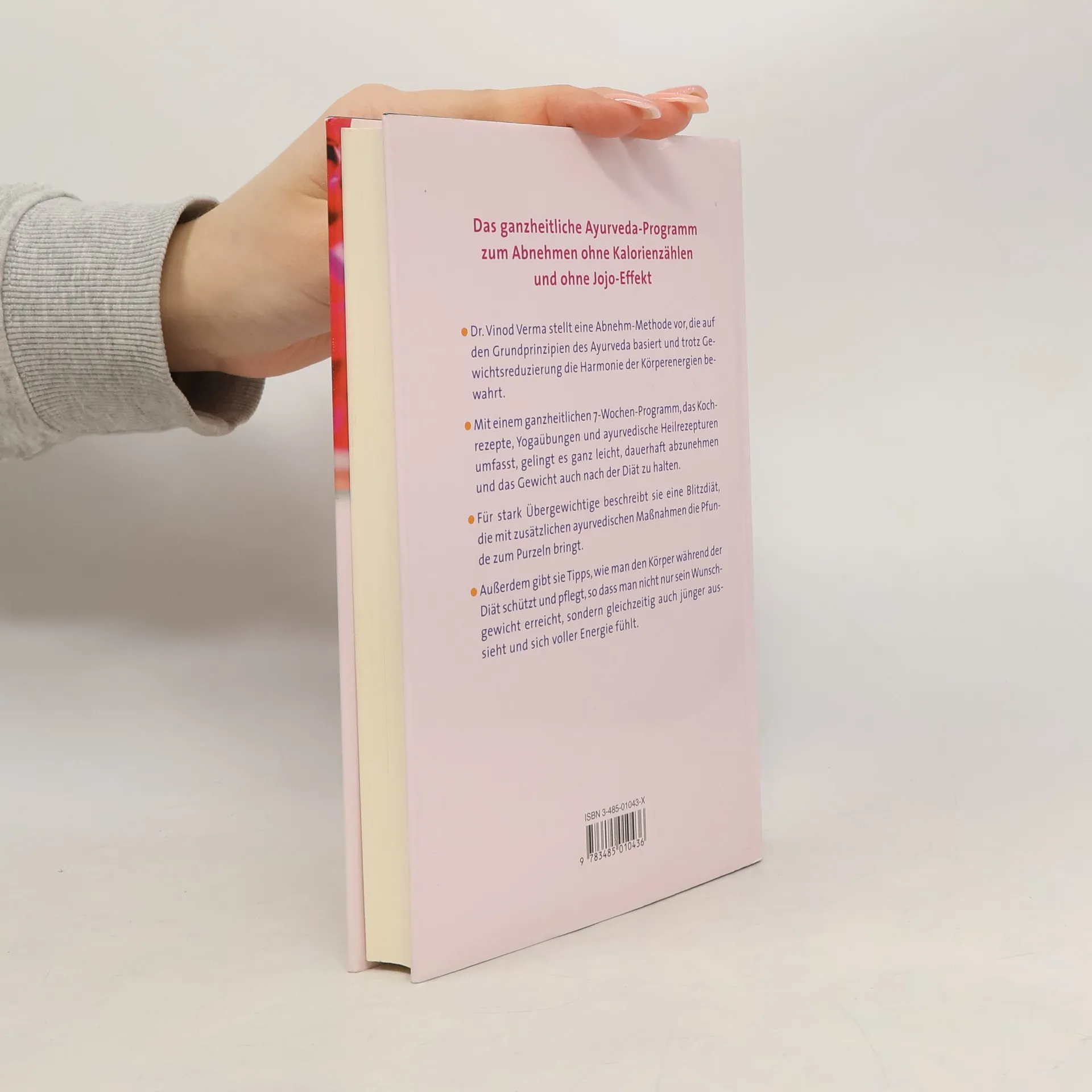 Das ganzheitliche Ayurveda-Programm zum Abnehmen ohne Kalorienzählen und ohne Jojo-Effekt Dr. Vinod Verma stellt eine Abnehm-Methode vor, die auf den Grundprinzipien des Ayurveda basiert und trotz Gewichtsreduzierung die Harmonie der Körperenergien bewahrt. Mit einem ganzheitlichen7-Wochen-Programm, das Kochrezepte, Yogaübungen und ayurvedische Heilrezepturen umfasst, gelingt es ganz leicht, dauerhaft abzunehmen und das Gewicht auch nach der Diät zu halten. Für stark Übergewichtige beschreibt sie eine Blitzdiät, die mit zusätzlichen ayurvedischen Maßnahmen die Pfunde zum Purzeln bringt. Außerdem gibt sie Tipps, wie man den Körper während der Diät schützt und pflegt, so dass man nicht nur sein Wunschgewicht erreicht, sondern gleichzeitig auch jünger aussieht und sich voller Energie fühlt.