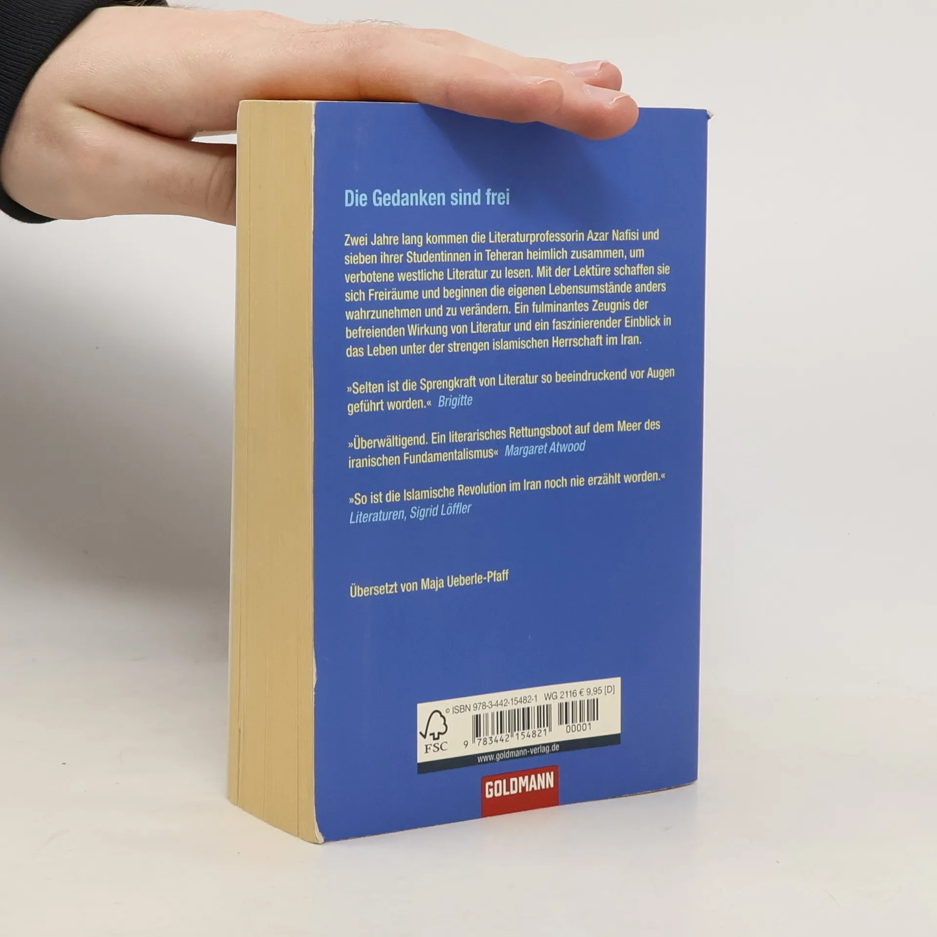 Zwei Jahre lang kommen die Literaturprofessorin Azar Nafisi und sieben ihrer Studentinnen in Teheran heimlich zusammen, um verbotene westliche Literatur zu lesen. Mit der Lektüre schaffen sie sich Freiräume und beginnen die eigenen Lebensumstände anders wahrzunehmen und zu verändern. Ein fulminantes Zeugnis der befreienden Wirkung von Literatur und ein faszinierender Einblick in das Leben unter der strengen islamischen Herrschaft in Iran. Als die iranische Literaturprofessorin Azar Nafisi den Schleier nicht länger tragen will, wird sie von der Universität Teheran verwiesen - und erfüllt sich einen Traum. Zwei Jahre lang kommen sie und sieben ihrer besten Studentinnen jeden Donnerstagmorgen heimlich zusammen, um verbotene Klassiker der westlichen Literatur zu lesen. Mit der Lektüre von Vladimir Nabokov, Jane Austen, Henry James und F. Scott Fitzgerald schaffen sie sich Freiräume in der ihnen aufgezwungenen Enge der Islamischen Republik Iran. Aus verstohlen in ihr Haus huschenden schwarz verschleierten Schatten werden junge Frauen in Jeans und bunten Kleidern. Sie öffnen sich in der Diskussion über die literarischen Werke und beginnen die eigene Realität, der gegenüber sie sich lange sprachlos und ohnmächtig fühlten, zu hinterfragen und zu verändern.