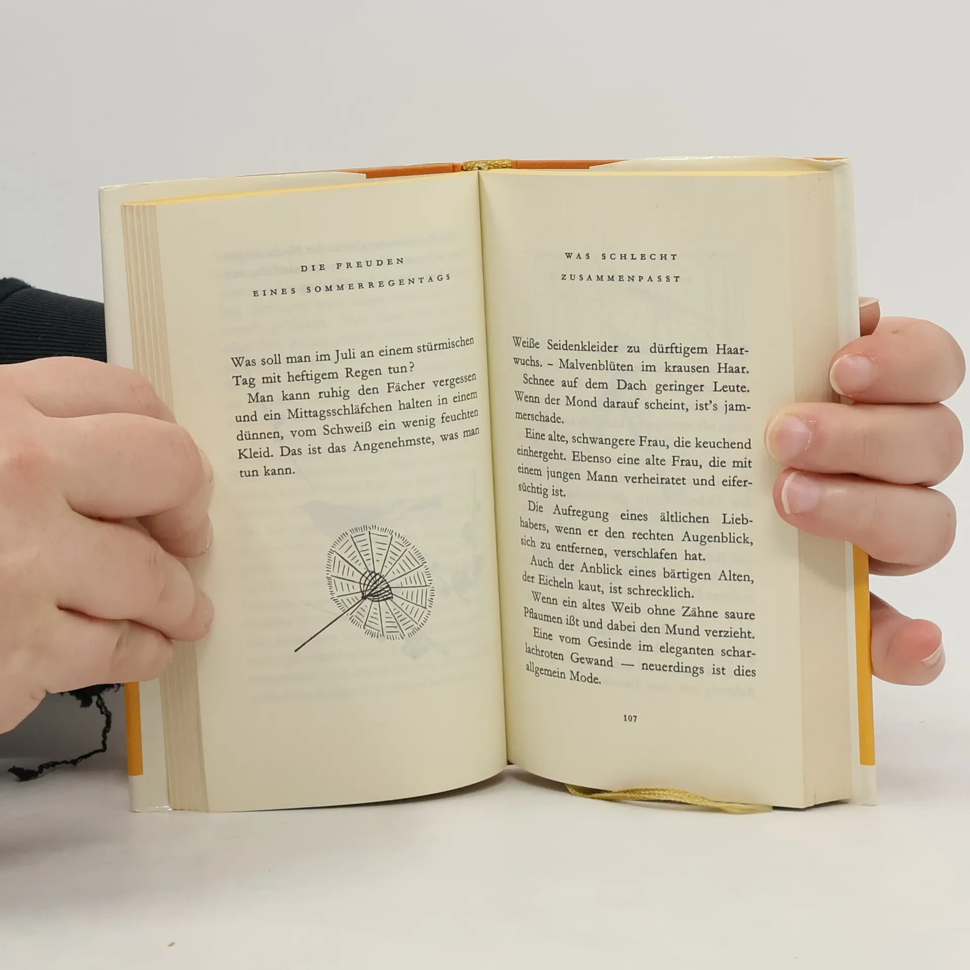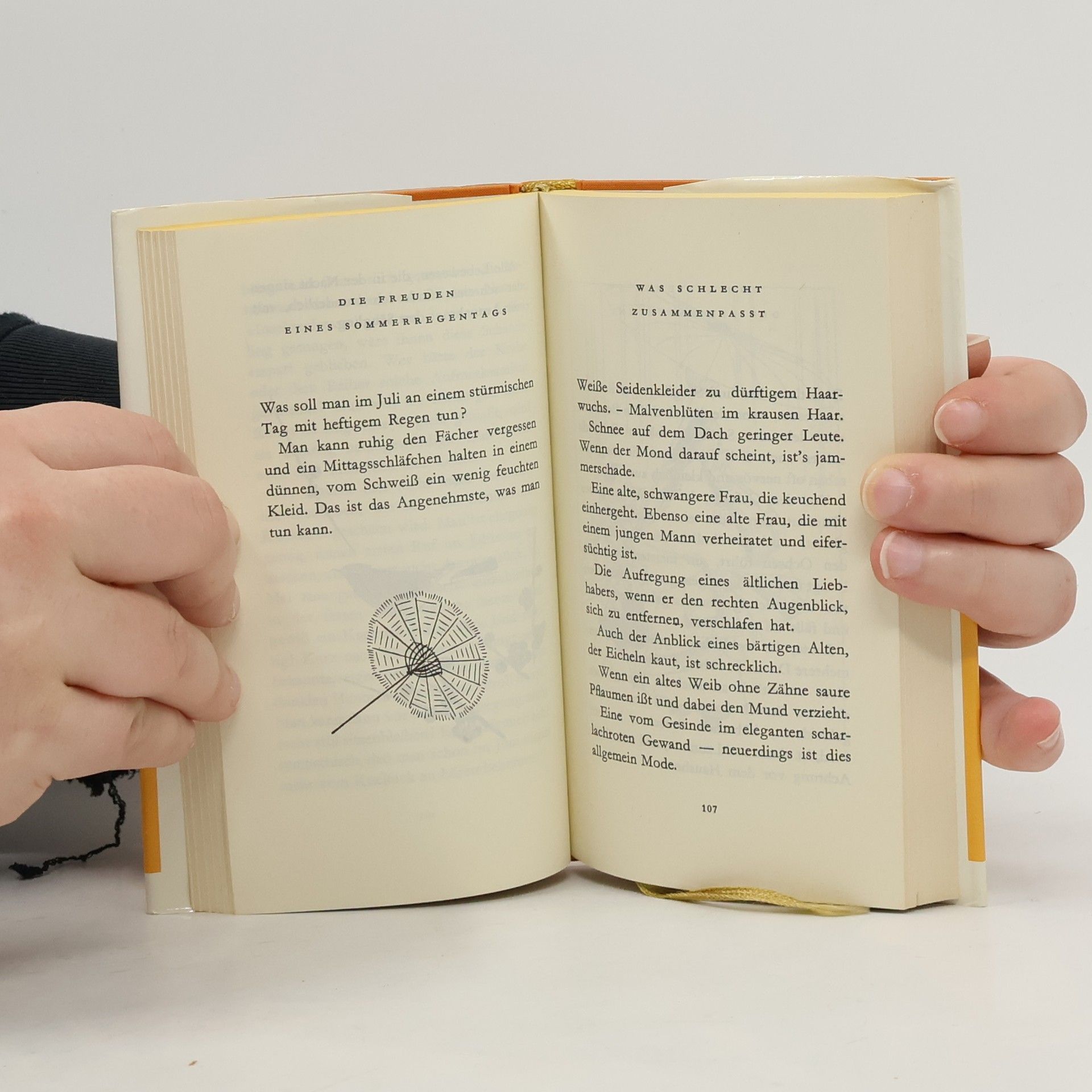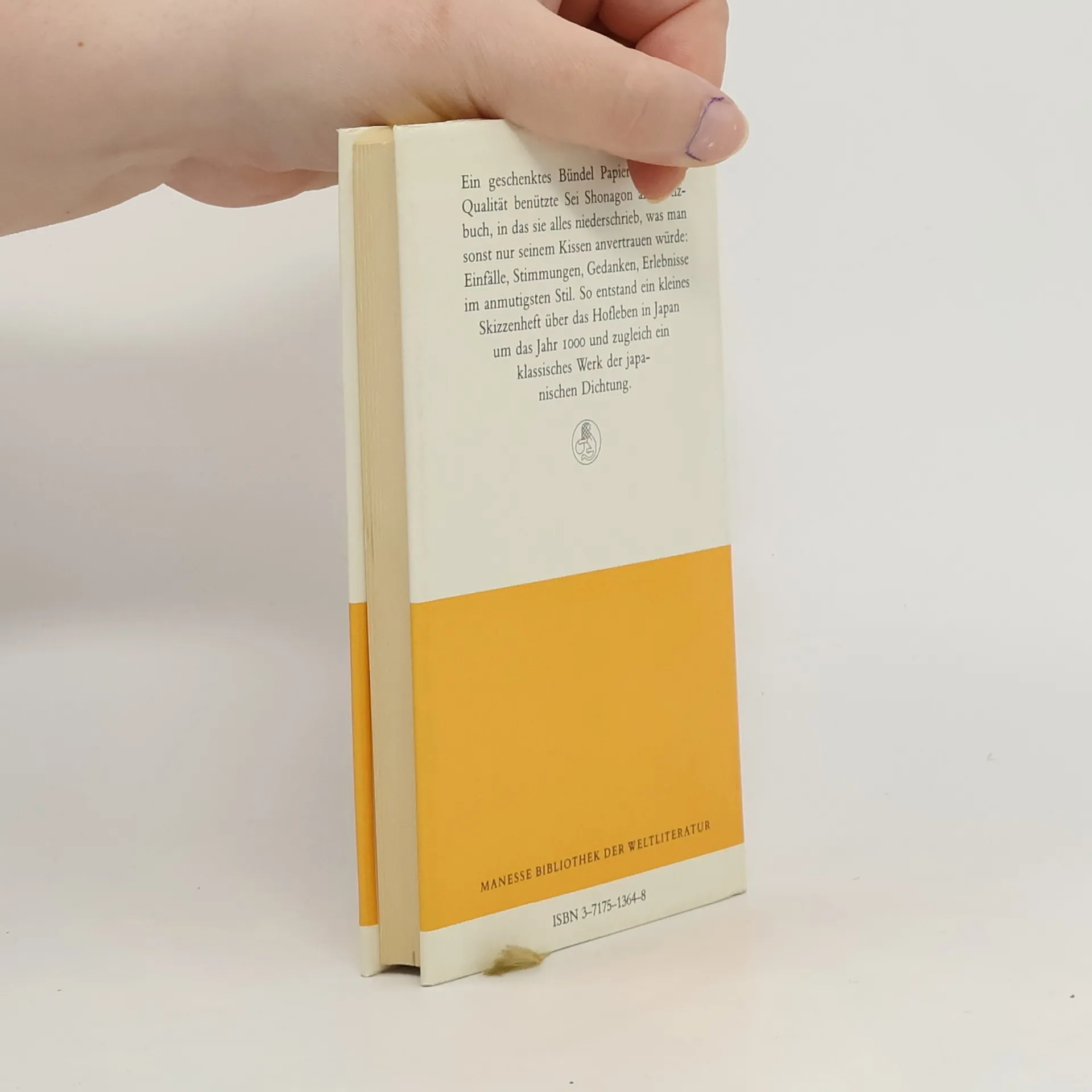 Ein Bündel edlen Papiers diente der Hofdame Sei Shonagon als Notizbuch, in das sie schrieb, was man sonst nur seinem Kissen anvertrauen würde: ihre vom Augenblick inspirierten Gedanken, ihre Stimmungen und Erlebnisse. So entstand ein heute ebenso faszinierendes wie anmutiges Skizzenheft über das Leben am japanischen Hof um das Jahr 1000. Das Makura no Sôshi, 'Das Skizzenbuch unterm Kopfkissen', stammt aus der späten Heian-Zeit (898–1186), in der die japanische Literatur nicht zuletzt dank der Hofdame Sei Shonagon einen bemerkenswerten Aufschwung nahm. Aus einer literarisch und wissenschaftlich hochbegabten Familie stammend – ihr Vater war ein damals bekannter Dichter –, trat sie in ihrem sechsundzwanzigsten Lebensjahr in den Dienst der Kaiserin Sadako und verbrachte ein Jahrzehnt bis zu deren Tod im Hofdienst. Sei Shonagons Beobachtungen zu Natur und Menschen überraschen durch gleichermaßen vorurteilsfreie Originalität wie große Belesenheit. Mit ihren lebendigen, ungezwungenen Improvisationen voller Witz und Scharfsinn schuf sie die literarische Gattung zuihitsu, und zeichnete 'dem Pinsel folgend' all das auf, was ihr im Augenblick bemerkenswert erschien. In Japan ahmten Dichter, Schriftsteller und Priester sie nach, ohne jedoch jemals wieder die Ursprünglichkeit und Feinheit ihres Vorbildes zu erreichen.