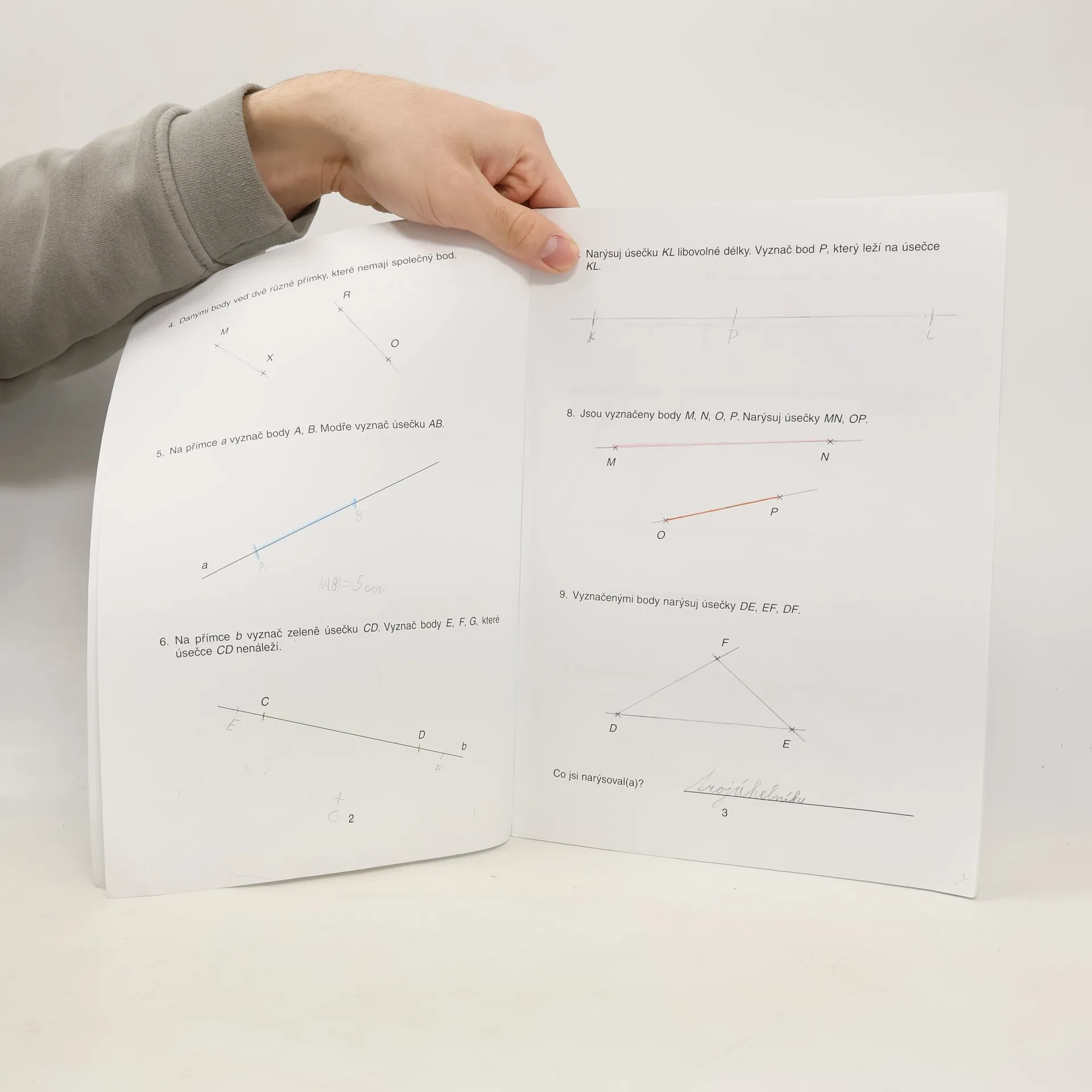 Početník pro 3.ročník ZŠ - 6.díl GEOMETRIE - přímky - polopřímky, poloha přímek v rovině - průsečík přímek - rýsování a měření úseček - rovina, rovinné útvary - přenášení úseček, porovnávání úseček