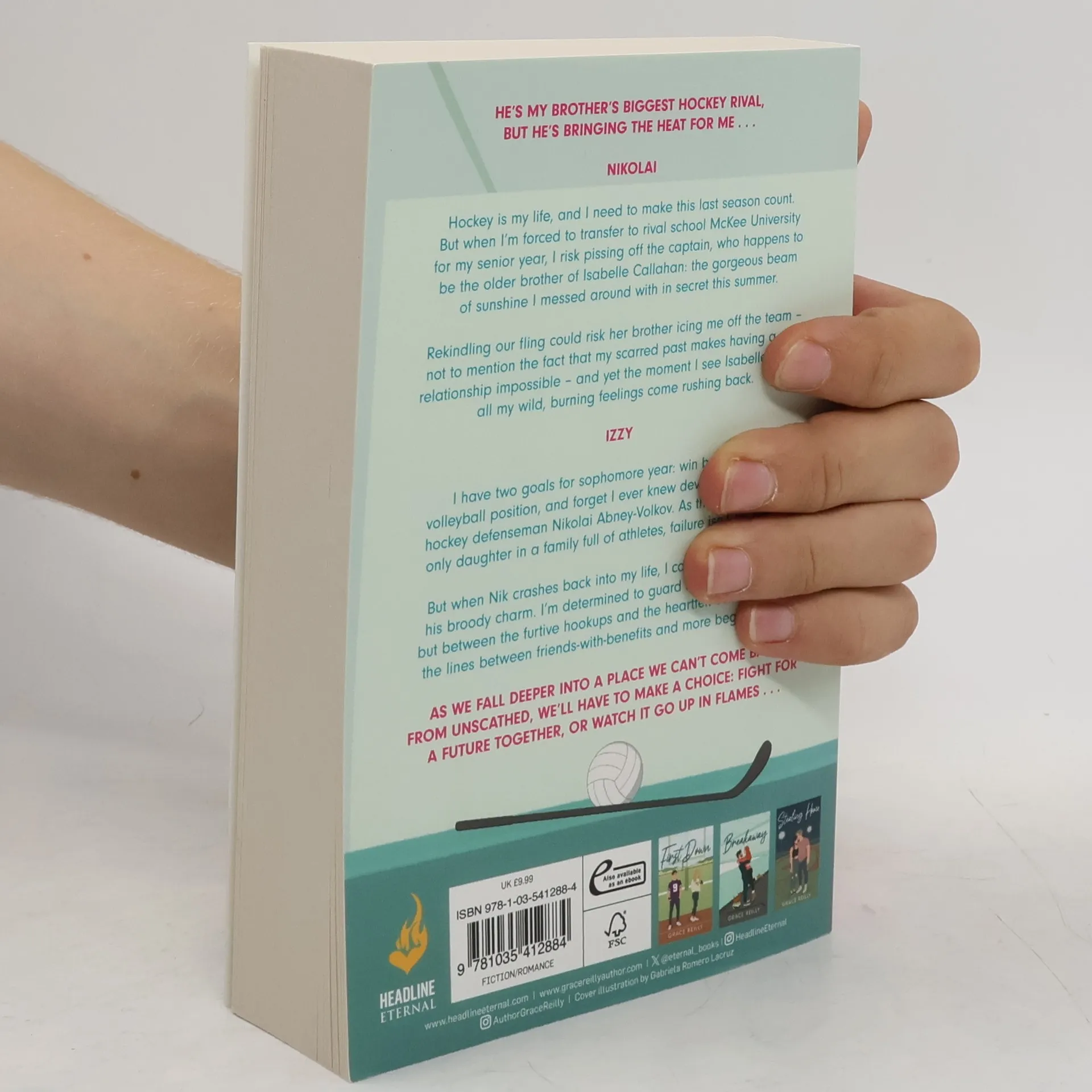 He's my brother's biggest hockey rival, but he's bringing the heat for me. Pre-order your new obsession from TikTok sensation Grace Reilly, a spicy brother's rival hockey romance! Perfect for fans of Hannah Grace, Liz Tomforde, and Elsie Silver. Nikolai's life revolves around hockey, and with his senior year at rival McKee University, he risks angering the captain—Isabelle Callahan's older brother—after a secret summer fling with her. Rekindling their romance could jeopardize his place on the team, especially with his troubled past making real relationships daunting. Yet, seeing Isabelle again ignites all his old feelings. Izzy's goals for sophomore year are clear: reclaim her volleyball position and forget the handsome hockey defenseman, Nikolai Abney-Volkov. As the youngest daughter in a family of athletes, she cannot afford failure. However, when Nik reappears, his brooding charm proves irresistible. Determined to protect her heart, she finds the lines between friends-with-benefits and something deeper blurring with every secret meeting and heartfelt conversation. As their connection deepens, they face a choice: fight for a future together or watch it slip away. Readers are obsessed with this tale of spice and stubborn college students, declaring it everything they needed.