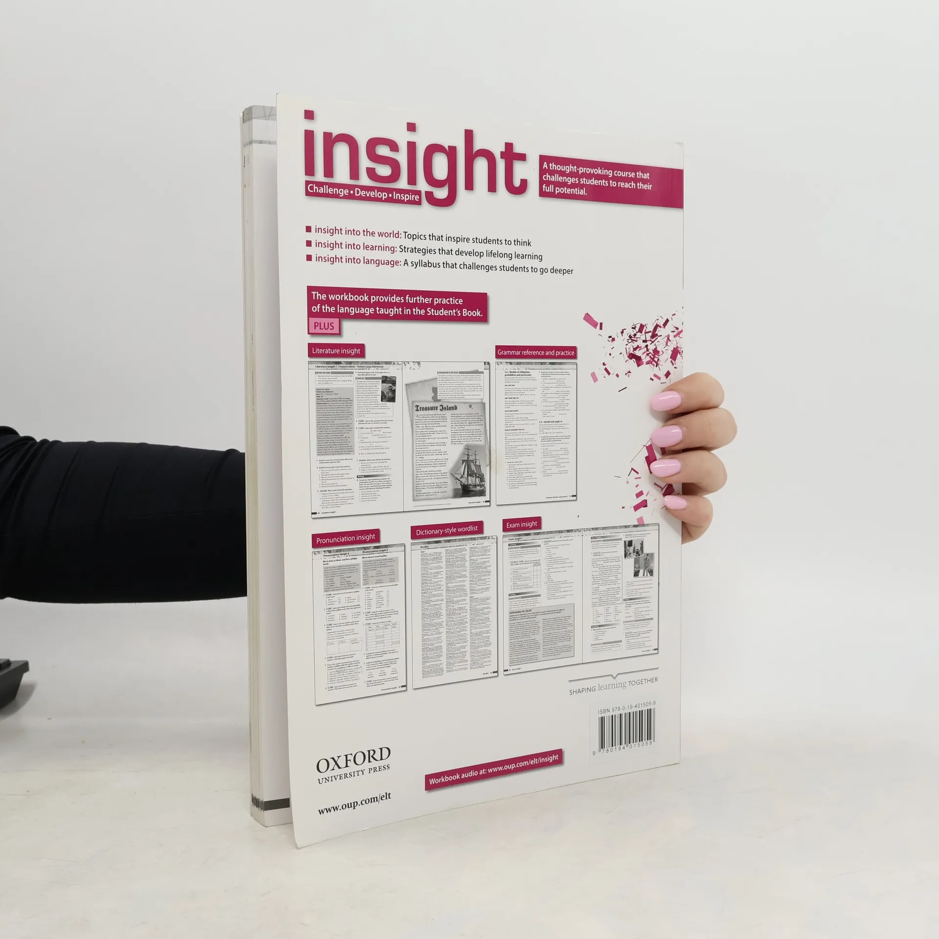 The insight Workbook supports the lessons in the Student's Book with extra exercises for every lesson, a unit-by-unit wordlist with dictionary-style definitions, and a grammar reference and practice section which is linked to the grammar lessons in the Student's book. The Workbook also contains optional extra lessons and activities in the form of the Literature insight bank which contains a series of lessons which will introduce your students to classic pieces of English Literature. The Exam insight sections offer preparation and practice for school leaving exams. The Workbook also contains a twenty page grammar and reference section that contains comprehensive grammar explanations and further practice. The inclusion of Online Practice with the Workbook allows students to access additional homework activities that are automatically marked and can be easily tracked online so you spend less time marking. Integrated video and audio, unlimited practice on activities and the ability to check the correct answers will enhance your students' independent learning.