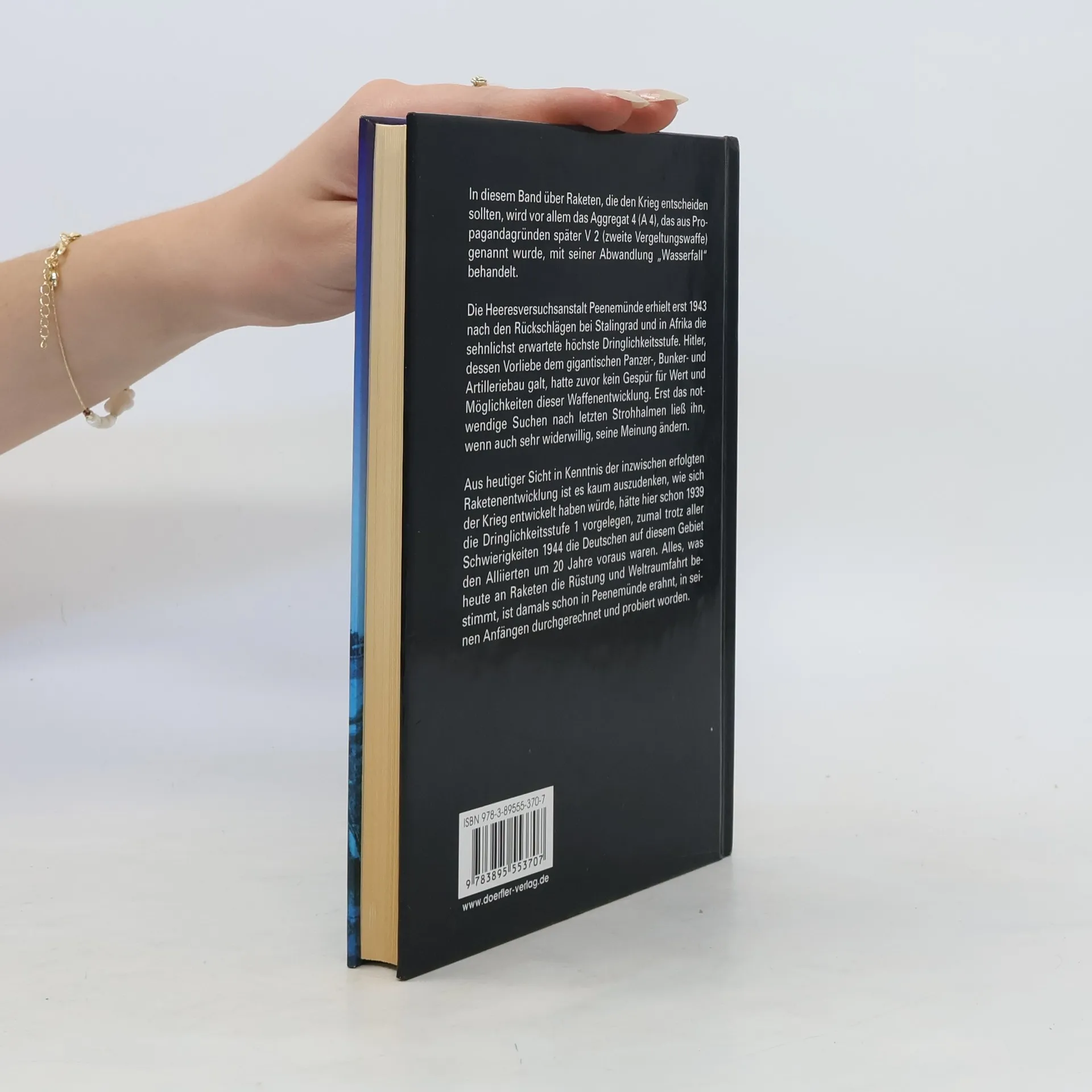 In diesem Band über Raketen, die den Krieg entscheiden sollten, wird vor allem das Aggregat 4 (A 4), das aus Propagandagründen später V 2 (zweite Vergeltungswaffe) genannt wurde, mit seiner Abwandlung 'Wasserfall' behandelt.§Die Heeresversuchsanstalt Peenemünde erhielt erst 1943 nach den Rückschlägen bei Stalingrad und in Afrika die sehnlichst erwartete höchste Dringlichkeitsstufe. Hitler, dessen Vorliebe dem gigantischen Panzer-, Bunker- und Artilleriebau galt, hatte zuvor kein Gespür für Wert und Möglichkeiten dieser Waffenentwicklung. Erst das notwendige Suchen nach letzten Strohhalmen ließ ihn, wenn auch sehr widerwillig, seine Meinung ändern.§Aus heutiger Sicht in Kenntnis der inzwischen erfolgten Raketenentwicklung ist es kaum auszudenken, wie sich der Krieg entwickelt haben würde, hätte hier schon 1939 die Dringlichkeitsstufe 1 vorgelegen, zumal trotz aller Schwierigkeiten 1944 die Deutschen auf diesem Gebiet den Alliierten um 20 Jahre voraus waren. Alles, was heute an Raketen die Rüstung und Weltraumfahrt bestimmt, ist damals schon in Peenemünde erahnt, in seinen Anfängen durchgerechnet und probiert worden.