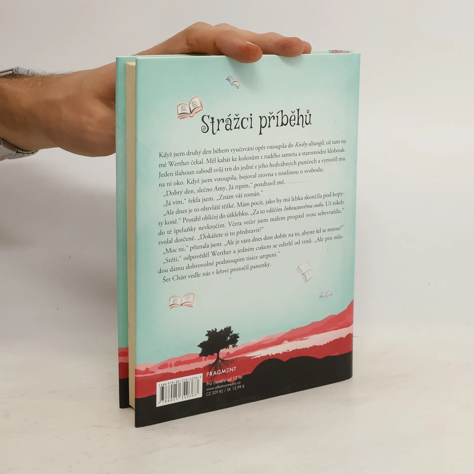 Kdosi vstupuje do knih a mění jejich děj. Kdo to je? A proč to dělá? Po jeho stopě půjdou strážci příběhů! Během letních prázdnin na zapomenutém ostrově kdesi ve Skotsku se Amy dozví, že jako členka staré šlechtické rodiny ovládá schopnost vstupovat do knih a ovlivňovat již napsané příběhy. Amy si ve světě knih brzy najde přátele: moudrého Šér Chána z Knihy džunglí, láskou usouženého Goethova Werthera nebo Olivera Twista, kterému daruje žvýkačku, což se posléze ukáže jako velmi nerozumné… Svět knih ale není tak pokojný, jak se Amy zprvu zdálo. Nejprve zmizí peníze z Ali Babova pokladu. Pak se cestou na ples k panu Darcymu zraní Elizabeth Bennetová, takže jeden z nejznámějších milostných příběhů je náhle v ohrožení. Amy je brzy jasné, že musí najít toho, kdo do příběhů zasahuje. Když události začnou prosakovat i do reálného světa, a dokonce mají oběť na životě, ukáže se, jak je ohrožení vážné. O co tajemnému nepříteli doopravdy jde? Mechthild Gläserová se narodila v létě 1986 v Essenu a studovala politologii, historii a ekonomiku. I dnes žije a pracuje v Porůří, kde občas a poměrně špatně tancuje balet – ale jen tehdy, když se nikdo nedívá. Miluje, když si může vymýšlet záhadné příběhy, přičemž se psaním začala poměrně brzy. Inspiraci k novým příběhům hledá skoro všude, ale nejlépe jí to jde u šálku mátového čaje.