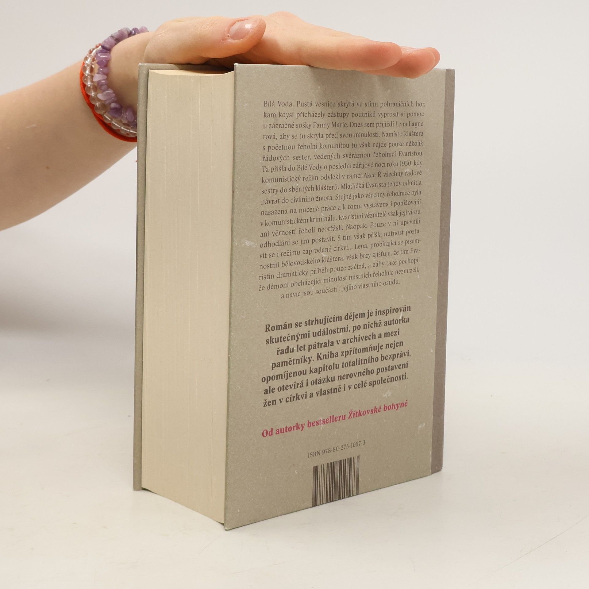 Dlouho očekávaný román Bílá Voda vypráví strhující příběh, jehož hlavní hrdinkou je Lena Lagnerová. Ta přichází do kostela v Bílé Vodě, pusté horské vesnici, kde se nachází zázračná soška Panny Marie. Lena tu nachází jen pár řádových sester, které má na starost řeholnice Evarista. Ta spolu s nimi dorazila do vesnice poslední zářijové noci roku 1950, kdy byly všechny řádové sestry odvedeny komunistickým režimem do sběrných táborů.