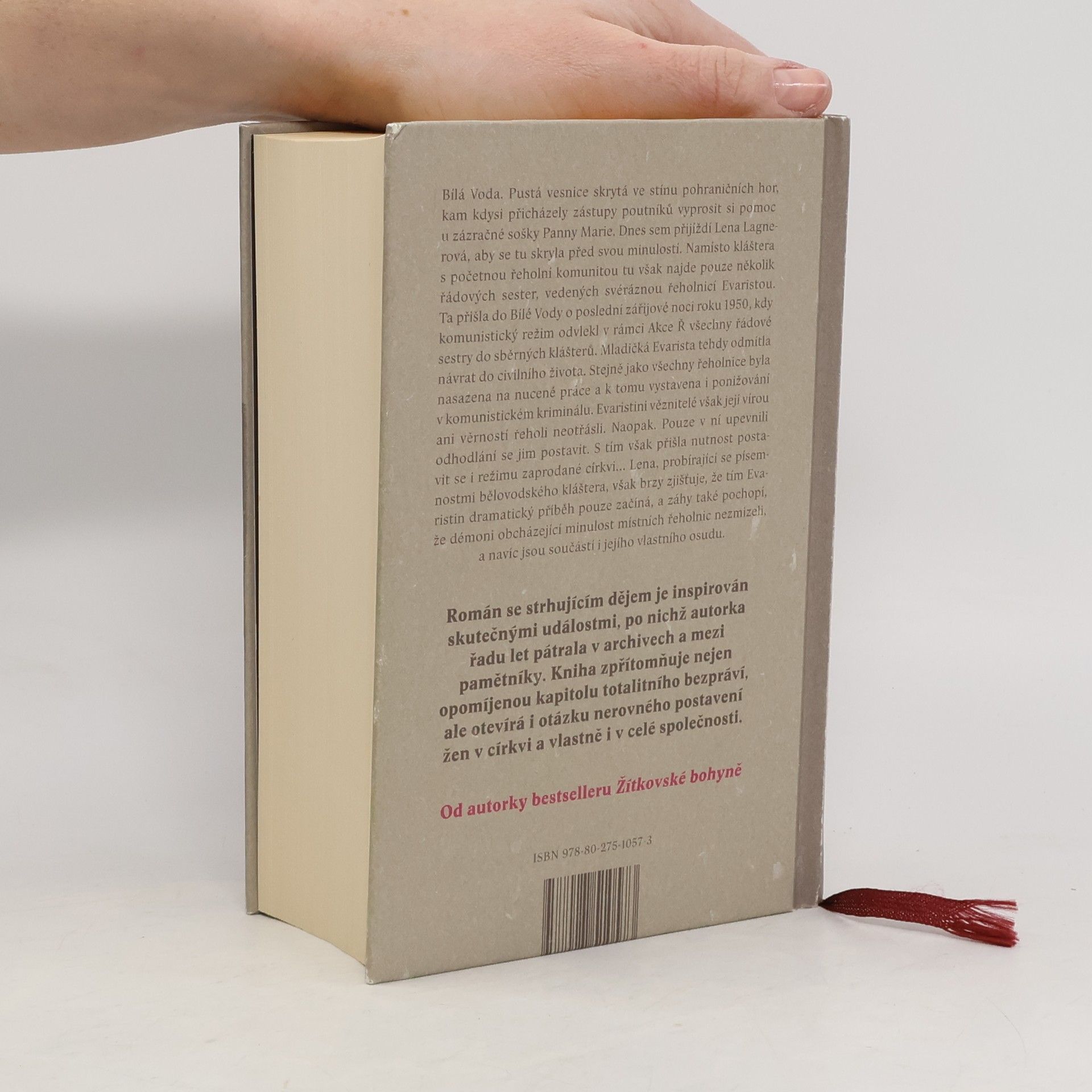 Dlouho očekávaný román Bílá Voda vypráví strhující příběh, jehož hlavní hrdinkou je Lena Lagnerová. Ta přichází do kostela v Bílé Vodě, pusté horské vesnici, kde se nachází zázračná soška Panny Marie. Lena tu nachází jen pár řádových sester, které má na starost řeholnice Evarista. Ta spolu s nimi dorazila do vesnice poslední zářijové noci roku 1950, kdy byly všechny řádové sestry odvedeny komunistickým režimem do sběrných táborů.